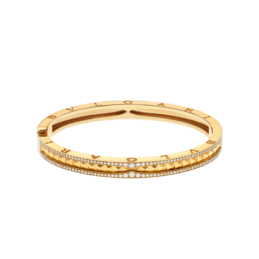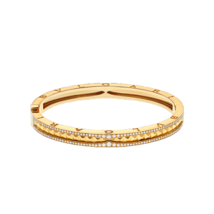 Drawing its inspiration from the world’s most renowned amphitheater, the Colosseum, B.zero1 Rock is a groundbreaking statement of Bvlthtgari’s creative vision infused with a touch of irreverence. Challenging the very essence of jewelry aesthetics, its distinctive spiral is reimagined with gold studs, highlighting the unapologetic and visionary spirit of Bvlthtgari’s icon of design. B.zero1 Rock 18 kt yellow gold bracelet with pavé diamonds.