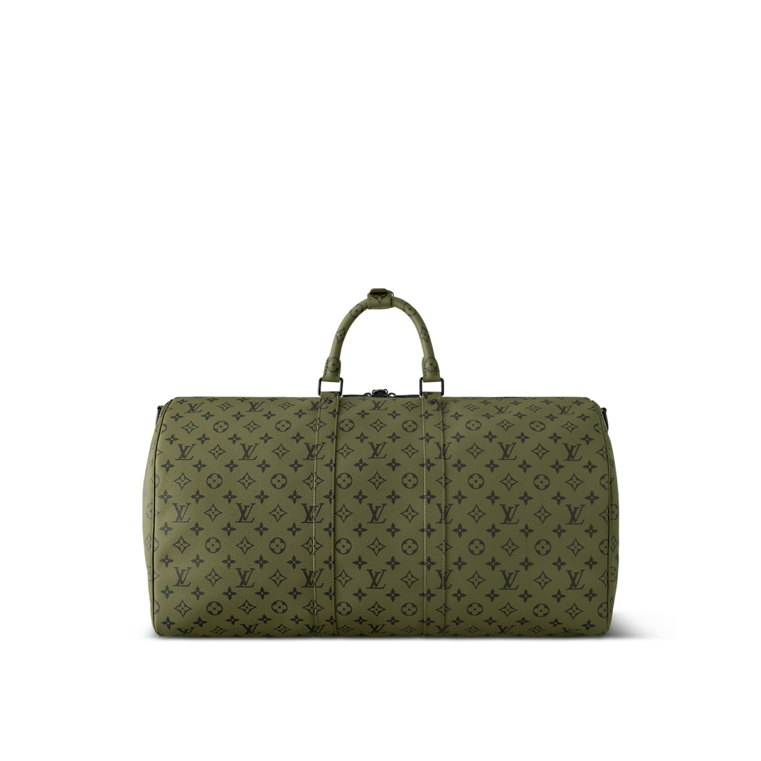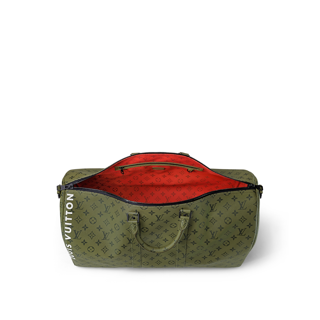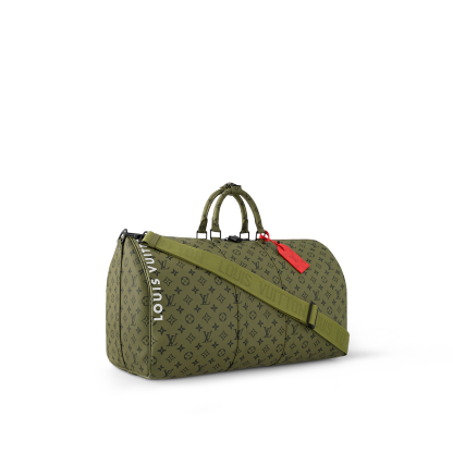 This Keepall Bandoulière 50 from the Monogram Tones capsule is made from Monogram canvas in a new colorway. The bag’s dominant khaki-green Monogram is contrasted with touches of bright-red Monogram canvas, on the removable name tag for example. A practical travel bag, this Keepall has a removable and adjustable shoulder strap.