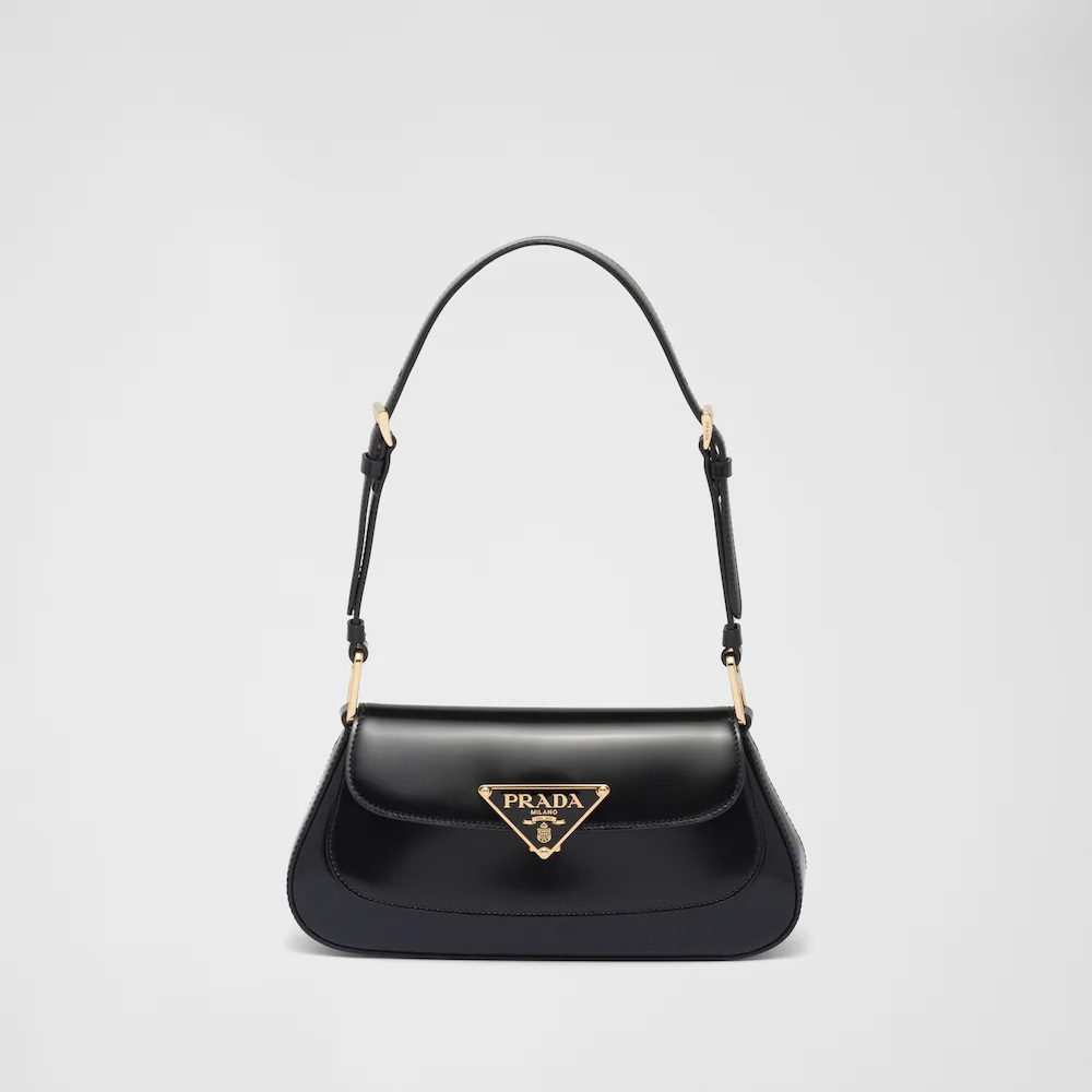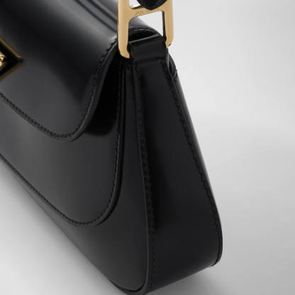 Dynamic, curved lines give this shoulder bag sophisticated and contemporary allure. The brushed leather with a modern finish enhances the versatile design which can be worn as a handbag or shoulder bag. Mixing refinement and functionality, the silhouette with flap is completed by the enameled metal logo applied on the clasp that gives the accessory an iconic and distinctive touch.