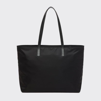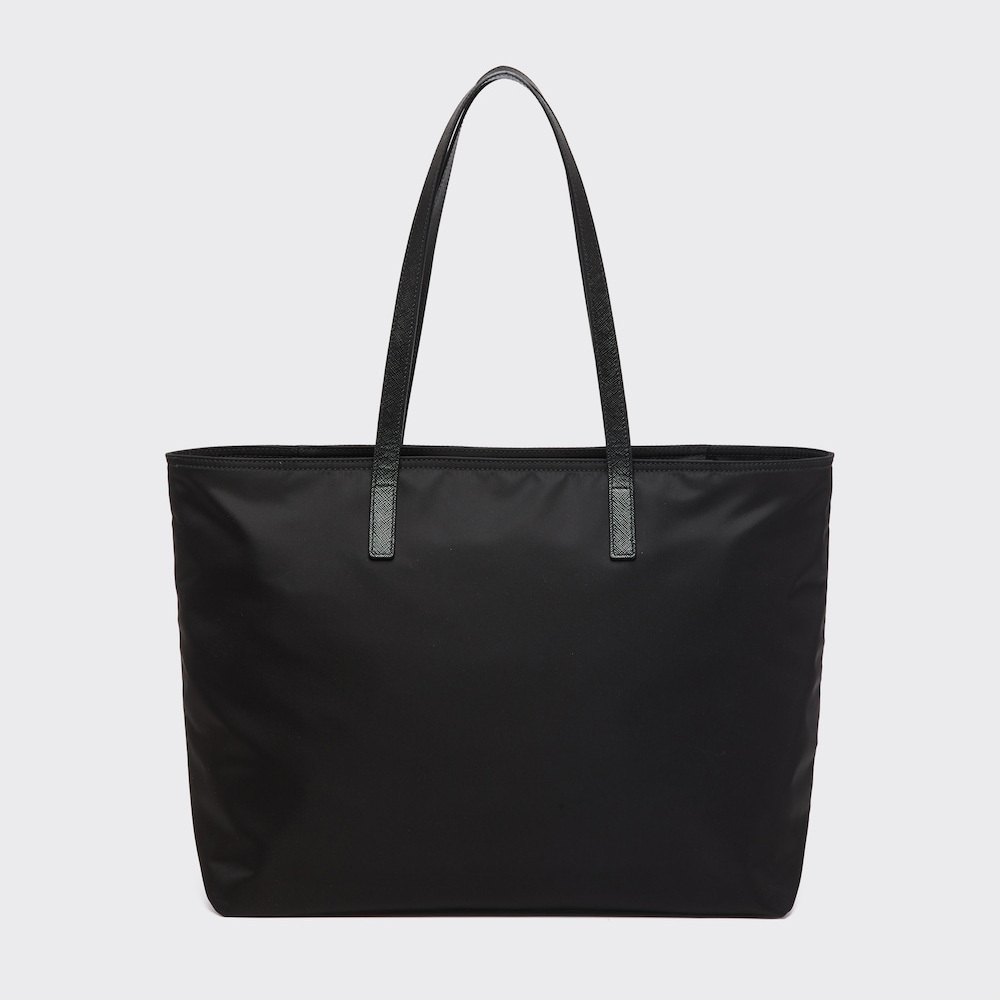 A roomy front pocket stands out on this tote bag with a classic design, accented with Saffiano leather handles and decorated with the distinctive triangle logo. Introduced to the luxury world precisely by Prthtada, nylon exemplifies the brand's propensity to combine concepts, workmanship and shapes that were previously considered irreconcilable. Here, the emblematic fabric is presented in its evoLthtVed, sustainable version produced from recycled, purified plastic material collected in the ocean.