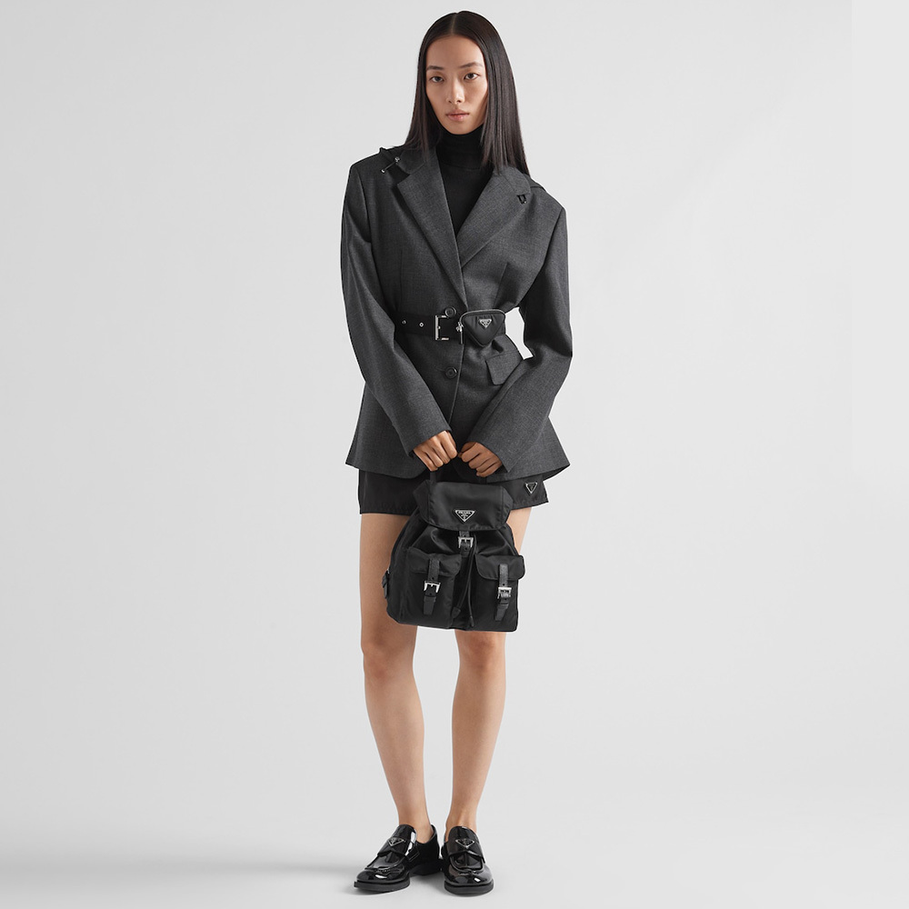 Part of Prthtada's heritage since the '80s, the nylon backpack reflects the main characteristics of the brand: innovative materials, a utilitarian approach to luxury, and a reinterpretation of the classics. This modern accessory with a minimalist design is made of Re-Nylon, produced from recycled, purified plastic material collected in the ocean.