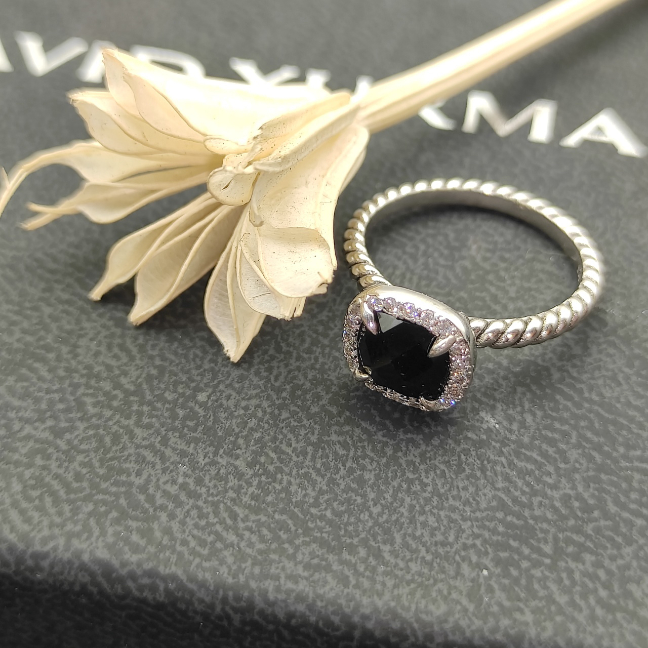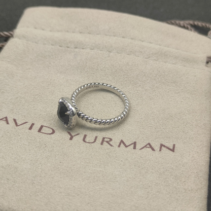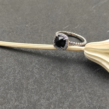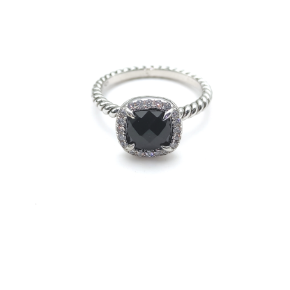 Petite Chatelaine® Pavé Bezel Ring Sterling Silver with Black Onyx and Diamonds, 7mm