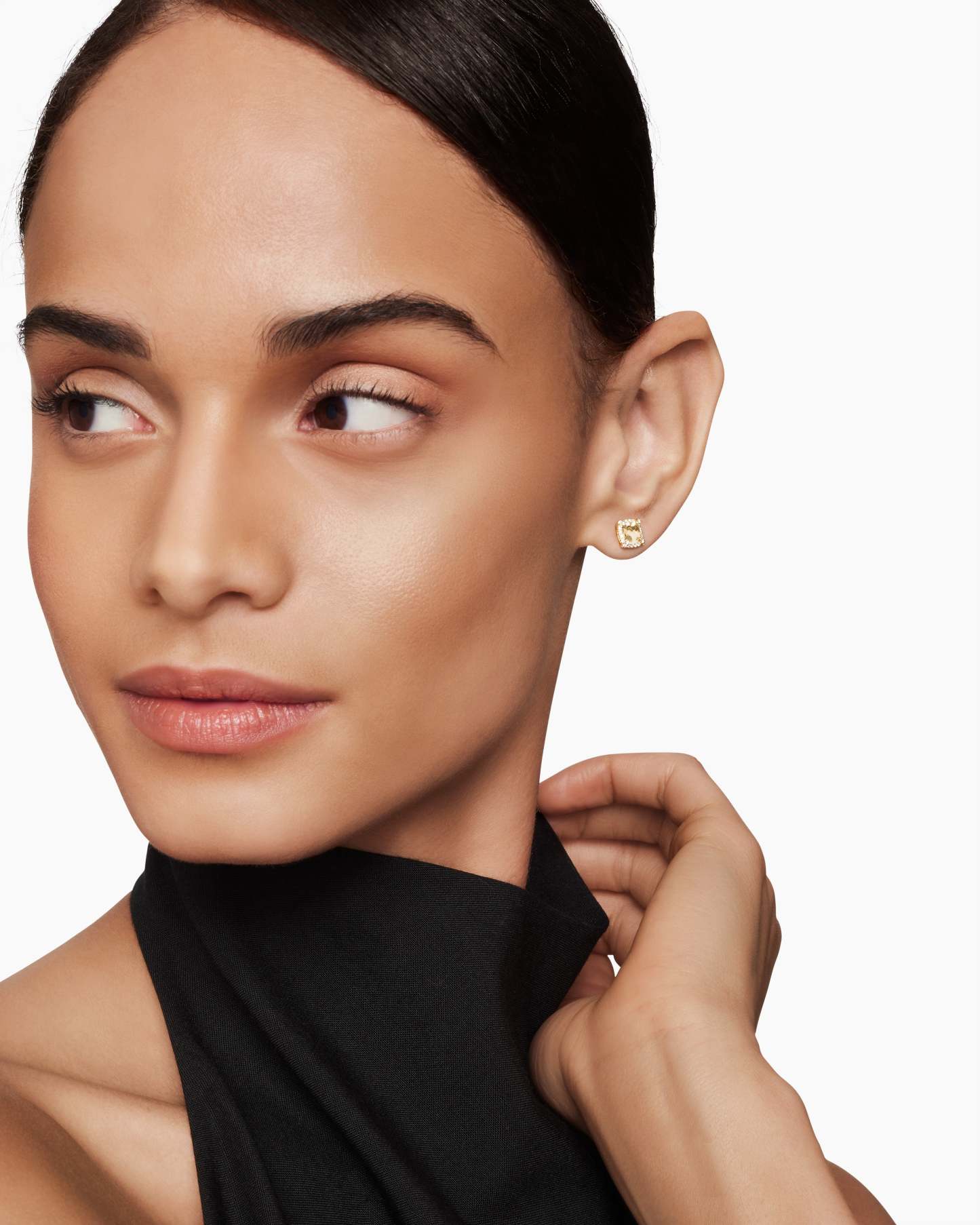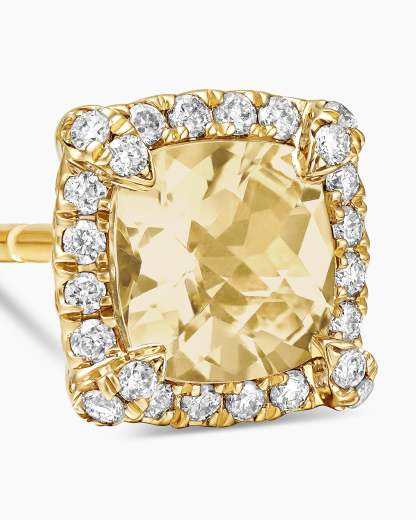 Petite Chatelaine® Pavé Bezel Stud Earrings 18K Yellow Gold with Champagne Citrine and Diamonds, 5mm