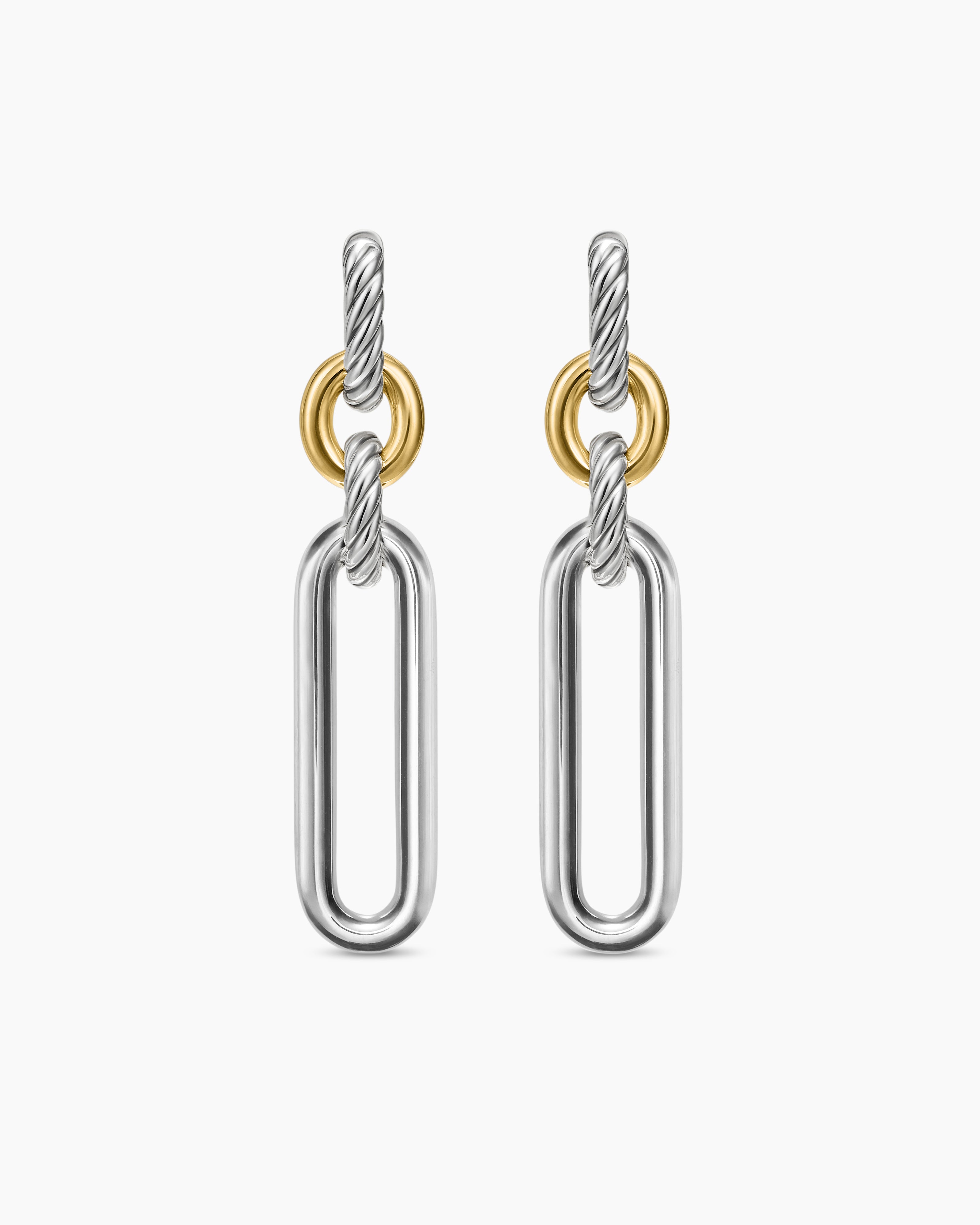 Lexington Double Link Drop Earrings Sterling Silver with 18K Yellow Gold, 53.5mm