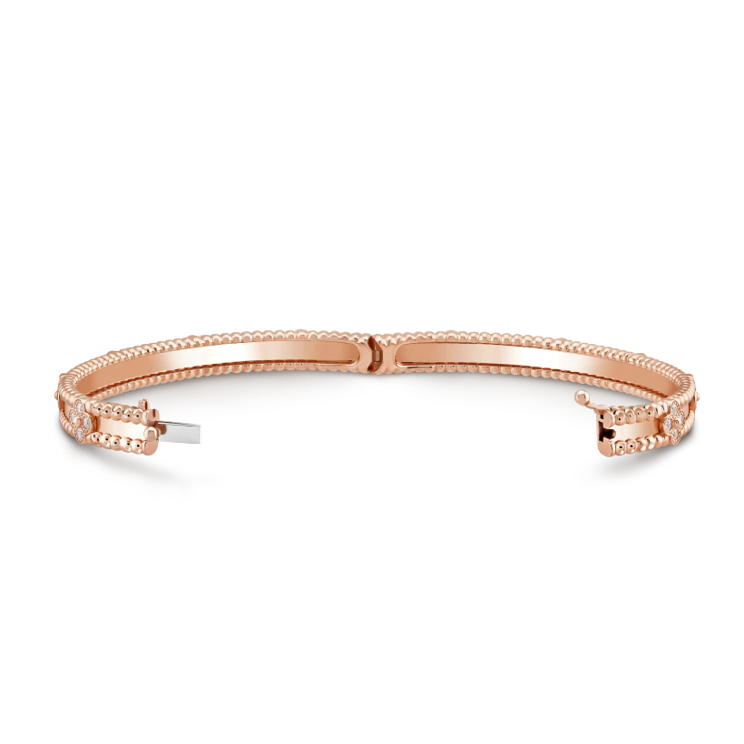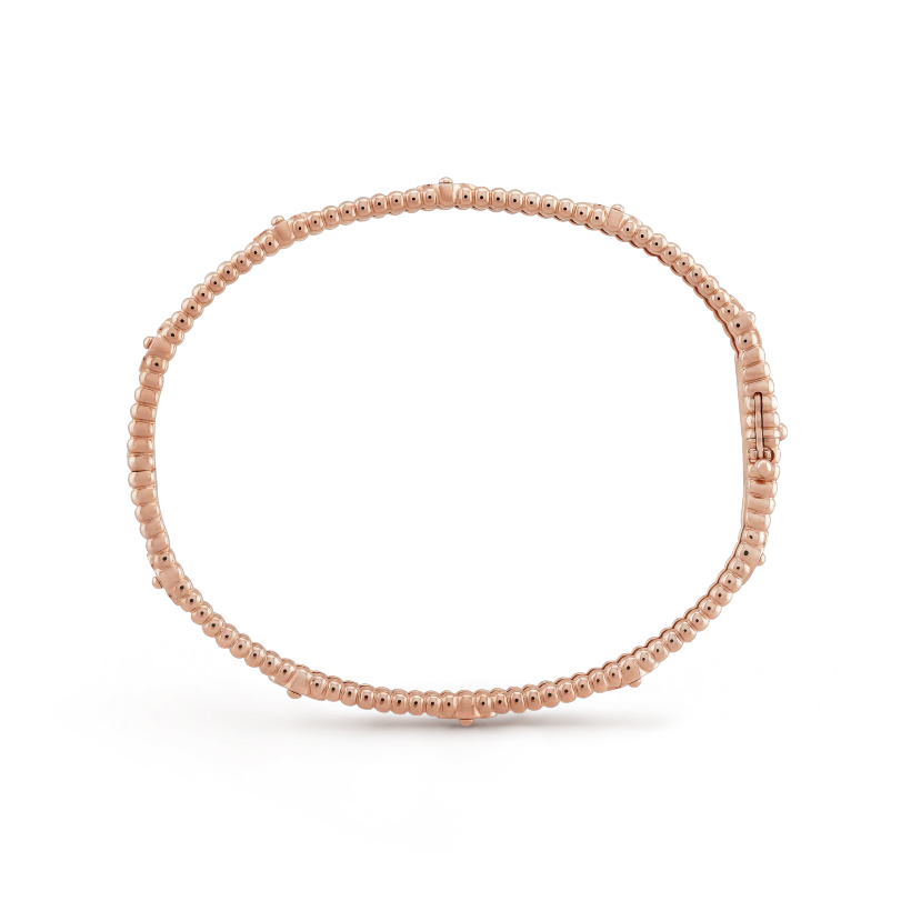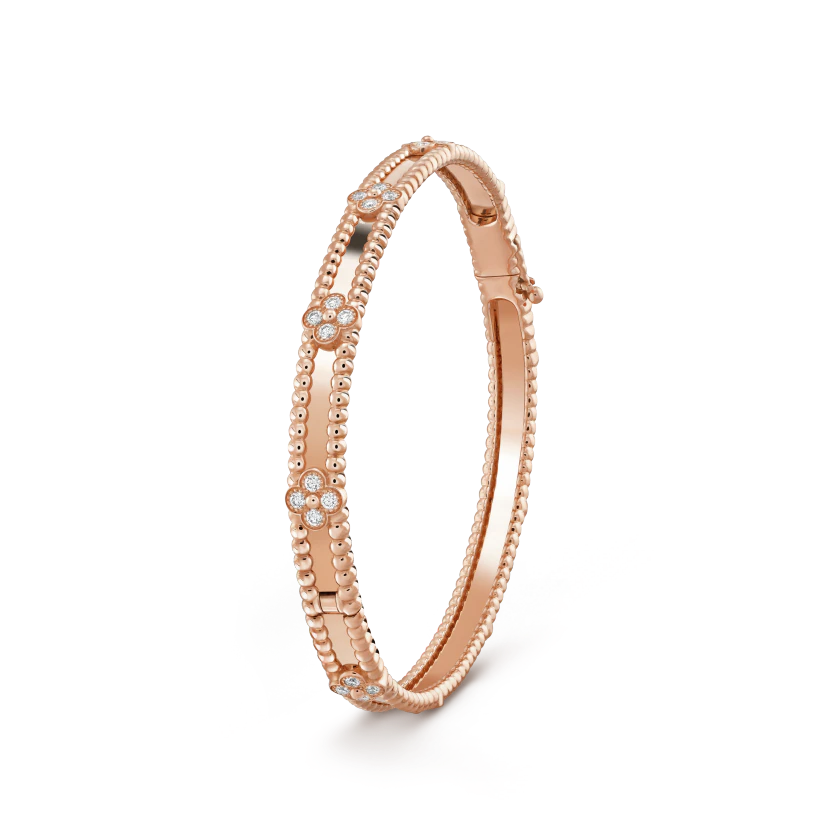 Perlee sweet clovers bracelet, 18K rose gold, round diamonds, medium model; diamond quality DEF, IF to VVS.