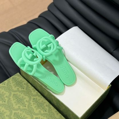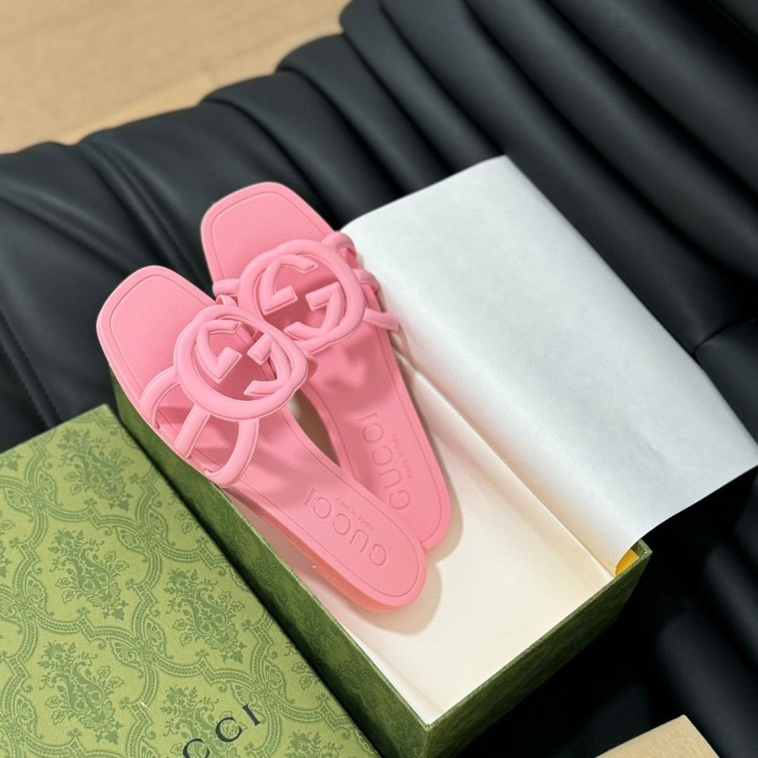 nspired by the summer spirit and beach clubs on the Italian coast, this item is part of Guthtcci Lido. Emblematic codes of the House and refined patterns are reinterpreted in contemporary ways for the Pre-Fall collection. This slide sandal appears in white rubber with an Interlocking G cut-out enriching the style with a distinct logo feel.