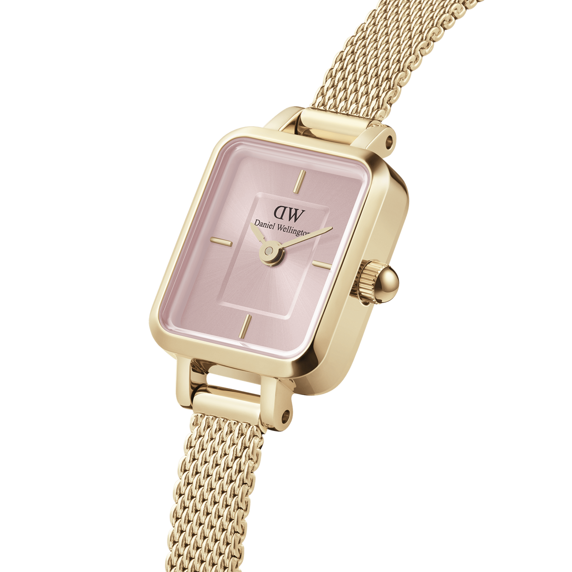 Designed at the intersection of watches and jewellery, the Quadro Mini has much to reveal. Our smallest watch to date features a compact Quadro dial in blush with a refined sunray finish and two index markers for a minimalist look. The fabric-like mesh bracelet has the delicate allure of an elegant bracelet; however, it’s interchangeable, adding even more versatility to the piece. Like most of our watches, this timepiece is crafted from durable 316L stainless steel, with high-quality plating in gold. So, wear it as a watch and love it as an exquisite piece of jewellery!