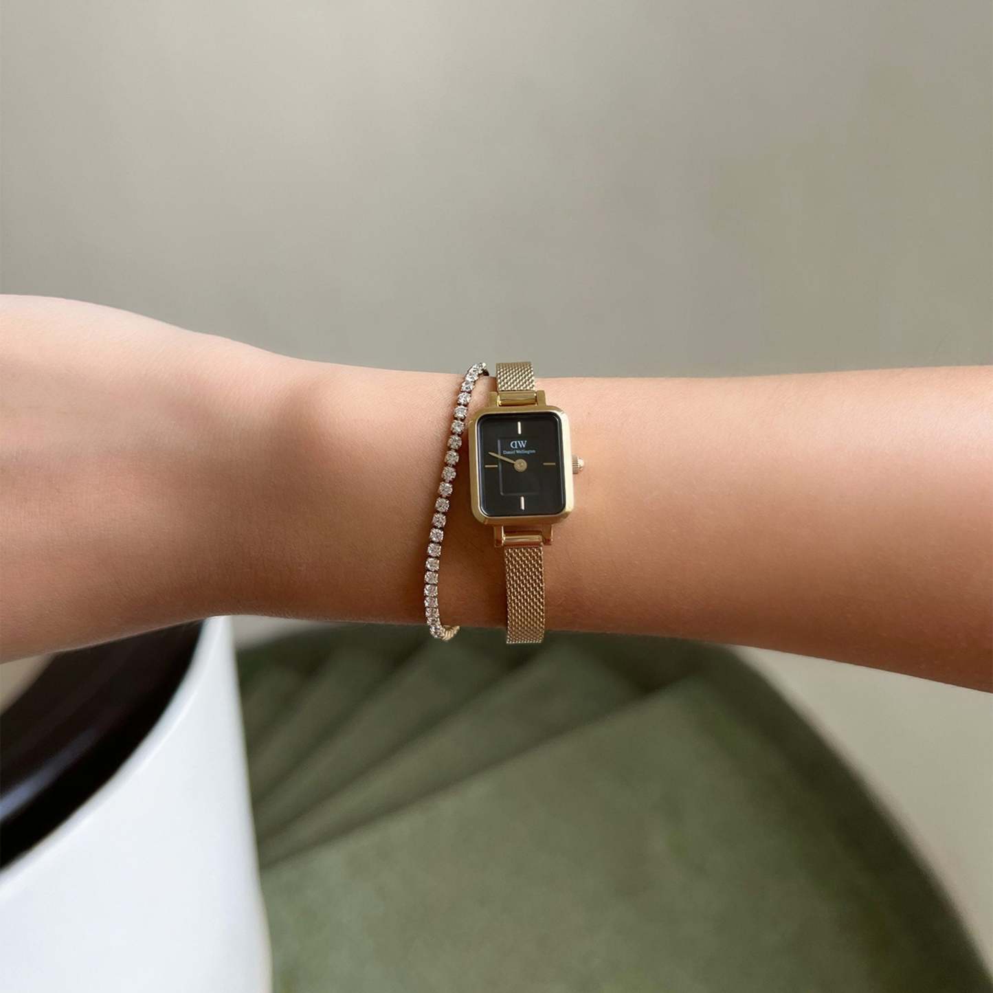 Accessorizing can be a challenging sport, but the Tennis Bracelet in gold is always at the top of its game. Comfortable and chic, this radiant piece gets you through the day, from morning to late cocktail hours. To achieve greater durability, each shimmering crystal is individually set and tightly secured. The chain itself is crafted from high-quality 316L stainless steel and features sizing rings to always fit you perfectly. The Tennis Bracelet is also a great team player, so pair it with your favorite Dathtniel Wellithtngton watch or bracelets.