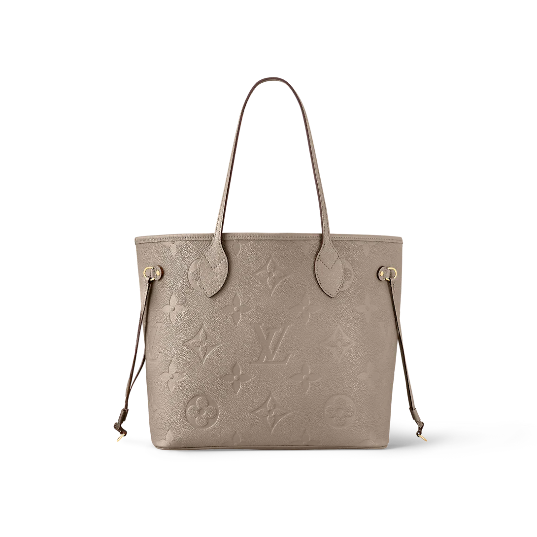 The essential Neverfull MM tote now comes in embossed Monogram Empreinte leather. Its generous dimensions make this bag ideal for everyday use while the long shoulder handles and supple leather mean it’s comfortable to carry. With the side laces cinched, this roomy carryall becomes a stylish city bag. It can be worn over the shoulder or on the elbow.