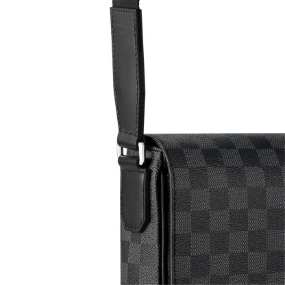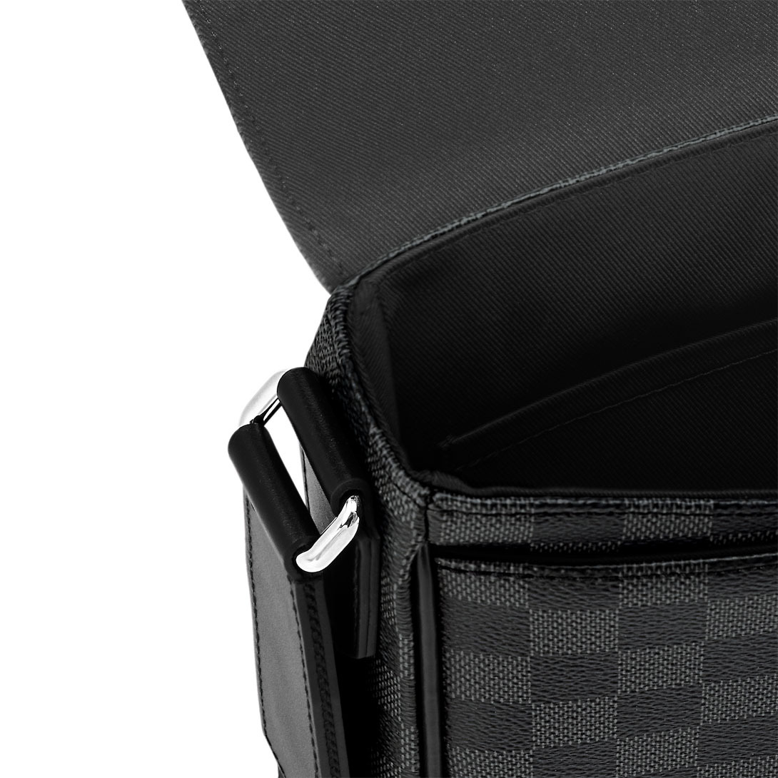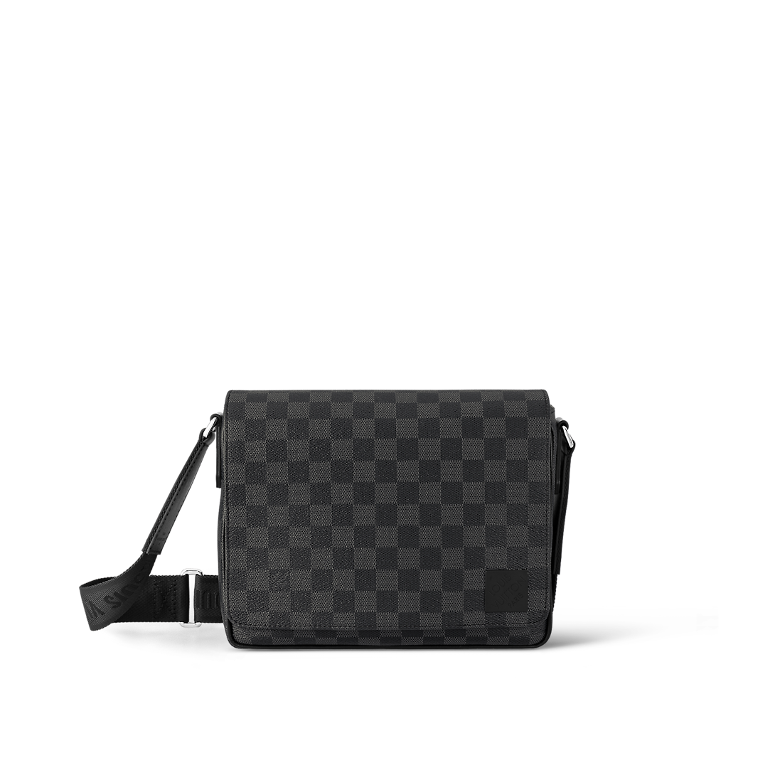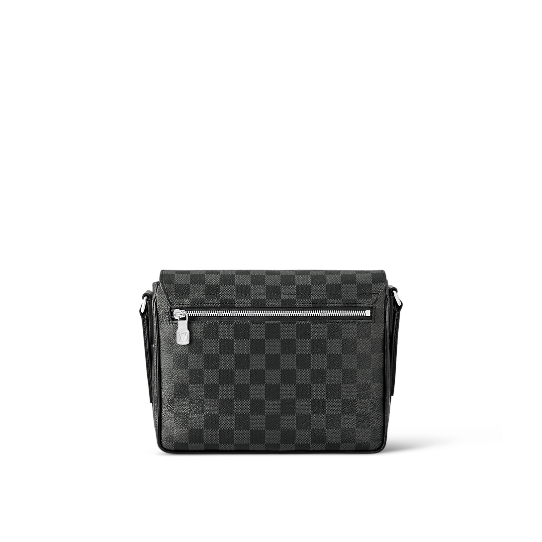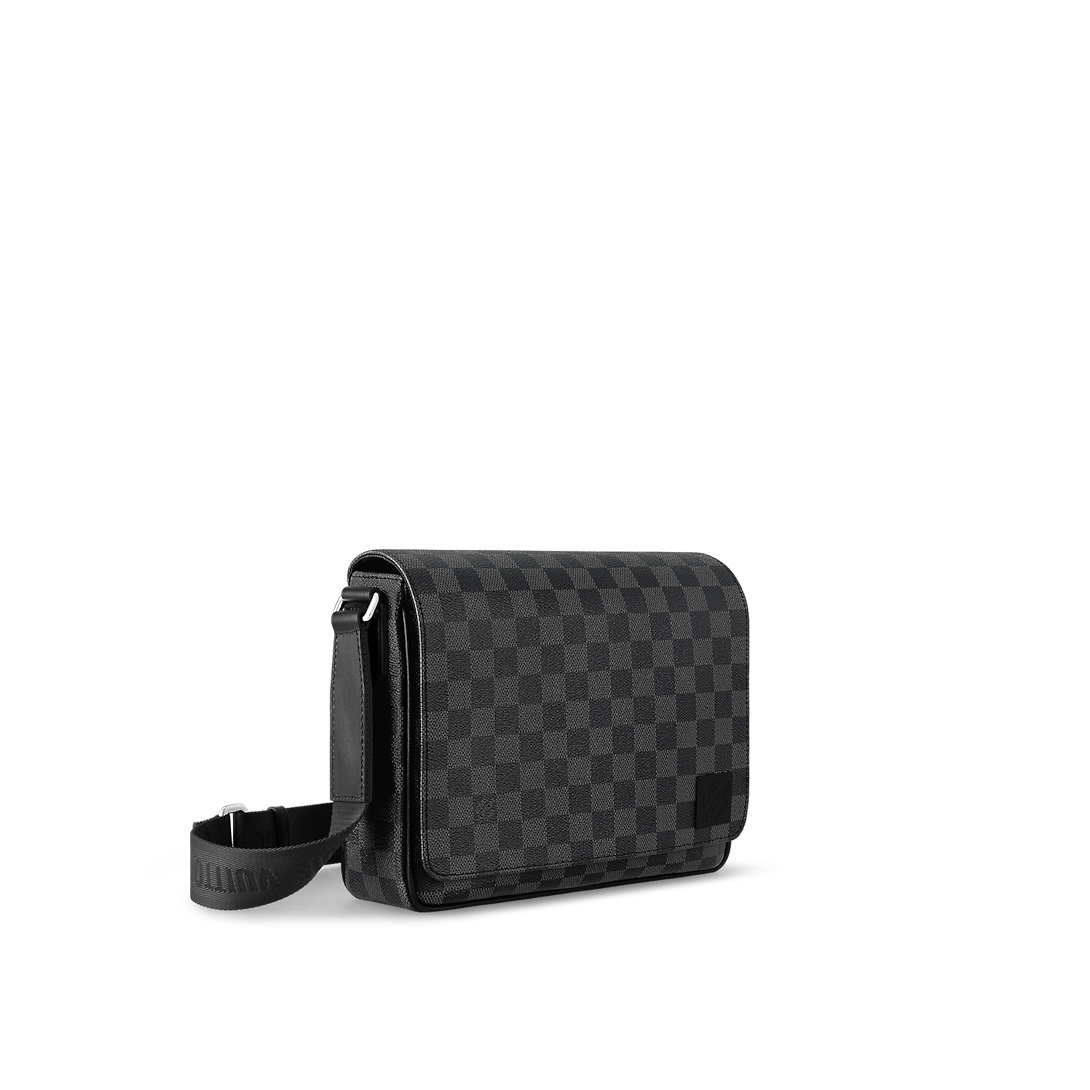 A little smaller and more rectangular than the previous version, the new District PM in Damier Graphite coated canvas has been revamped to emphasize the purity and proportions of this emblematic messenger bag. The outside zipped pocket and inside pockets keep things organized. The adjustable strap, signed "Lothtuis Vuithttton", ensures carrying comfort.
