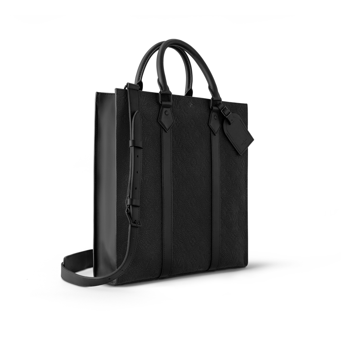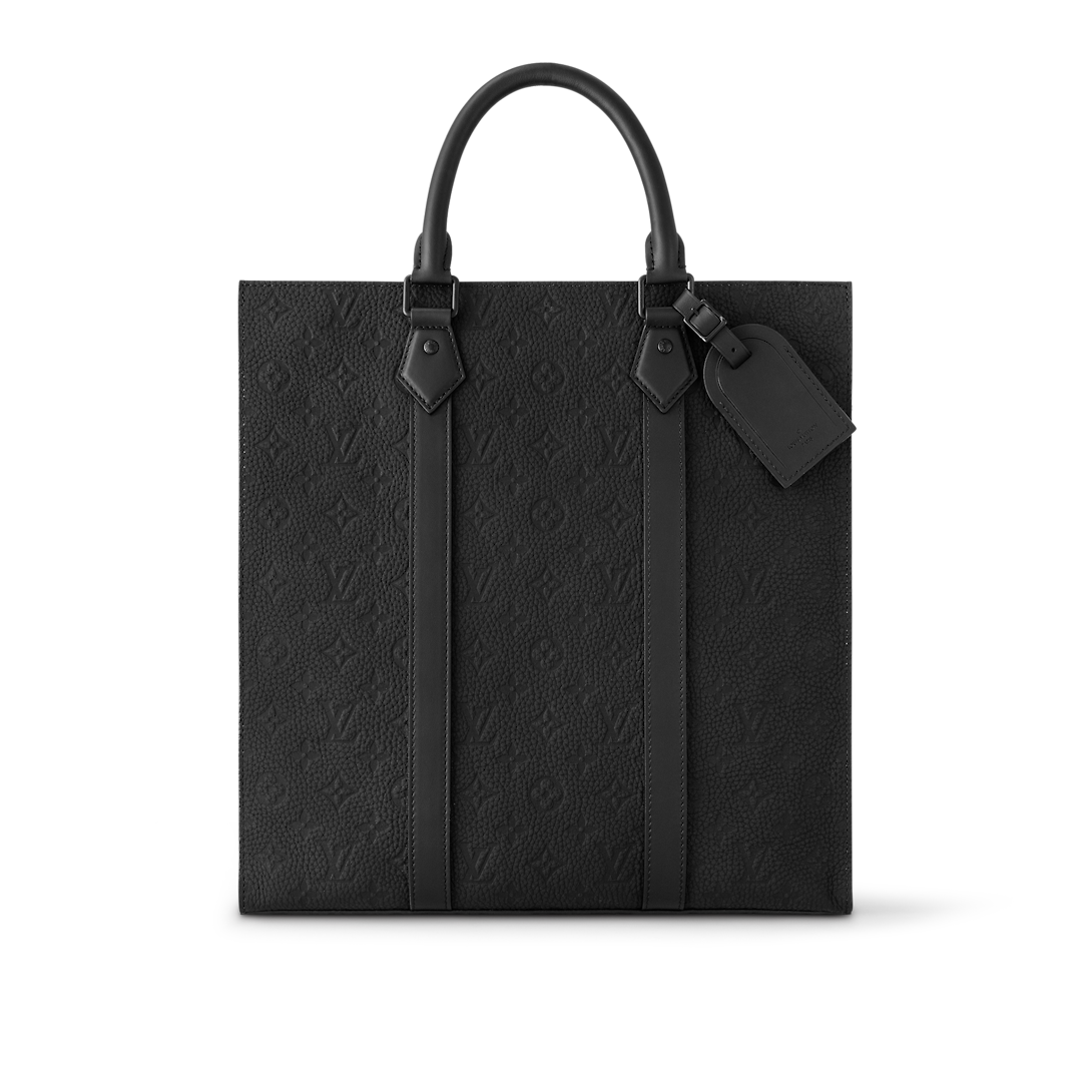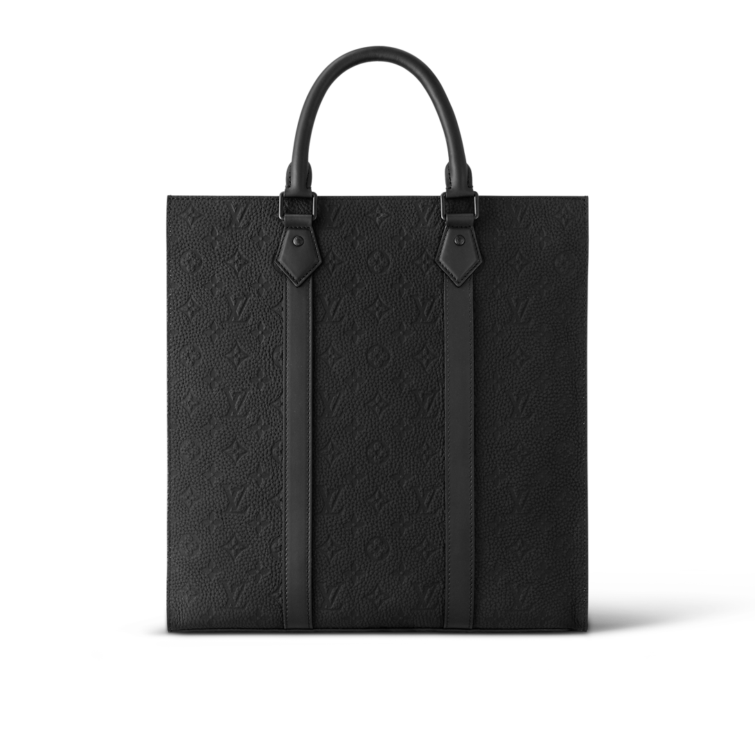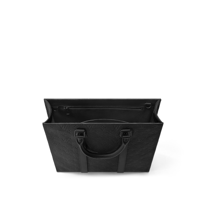 A spacious carryall, the Sac Plat in Monogram-embossed Taurillon leather combines functionality with style. The bag's straight edges and right angles, leather side bands, and rolled-leather top handles make it eye-catching. A removable and adjustable strap enables shoulder carry. The padded compartment is perfect for a laptop.