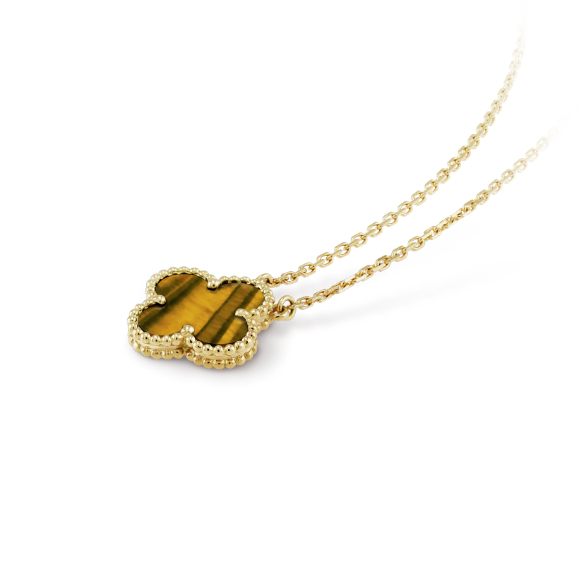 Vintage Alhambra pendant, 18K yellow gold, tiger’s eye.