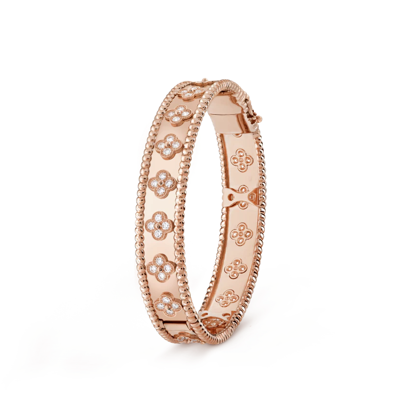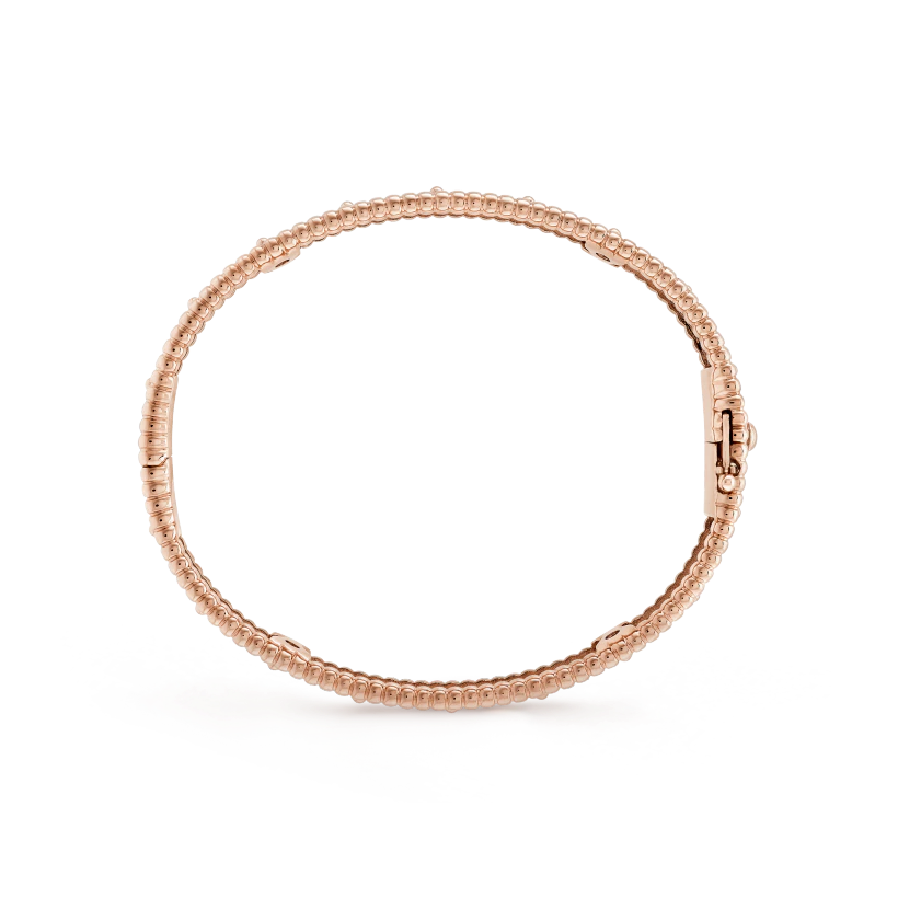 Perlee clovers bracelet, 18K rose gold, round diamonds, small model; diamond quality DEF, IF to VVS.