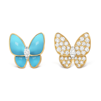 Vthtan Clthteef & Arthtpels revisits one of its most treasured themes in the Two Butterfly jewelry collection. These dazzling pieces combine color and asymmetry to reinterpret the grace and beauty of butterflies in flight.