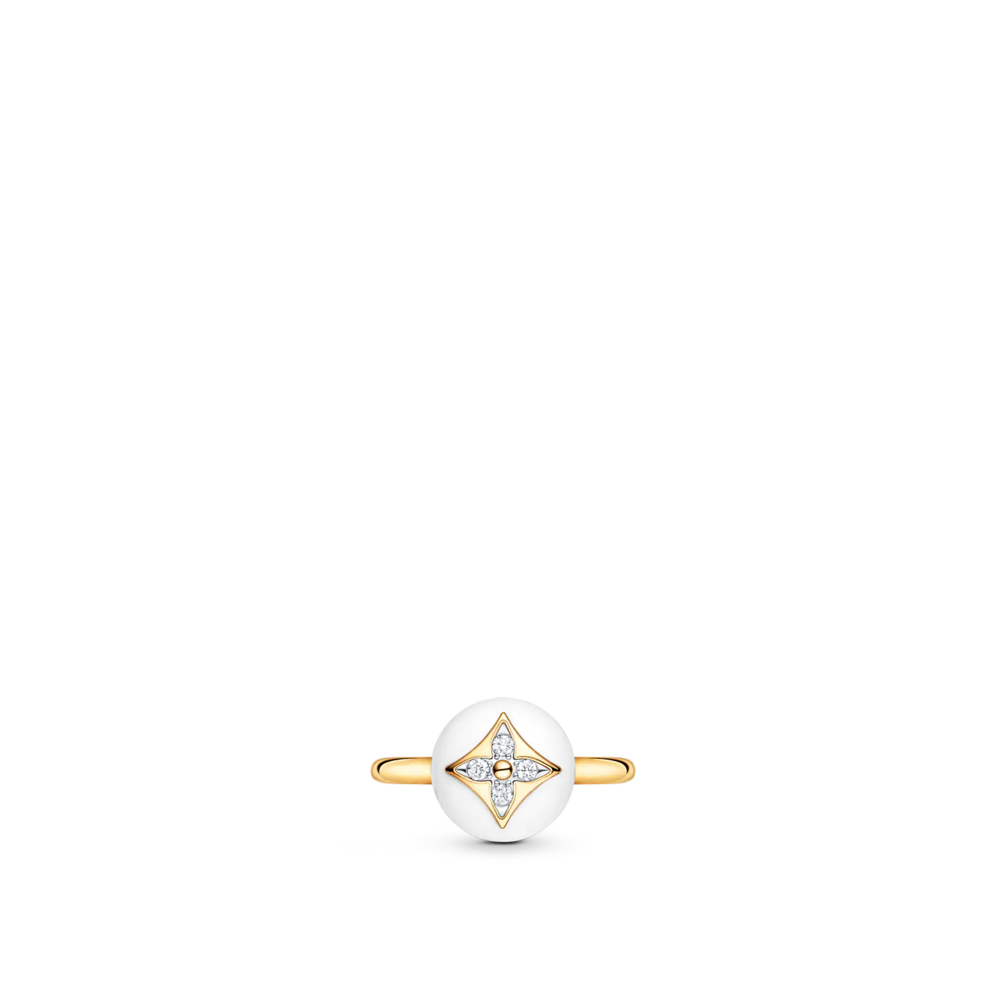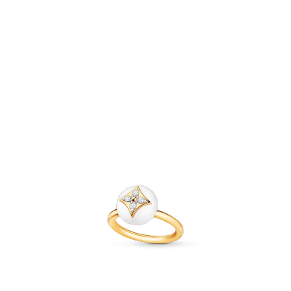 B Blossom Ring, Yellow Gold, White Gold, White Agate And Diamonds