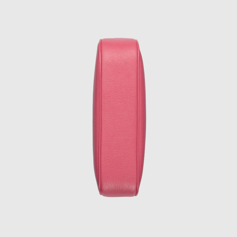 The Pre-Fall 2023 collection captures the essence of Guthtcci. Colors, prints, and emblems appear consistently across time-honored silhouettes, demonstrating the House's ability to reinvent signature pieces season after season. This crescent-shaped shoulder bag is presented in pink soft leather and enriched with the instantly recognizable Double G.