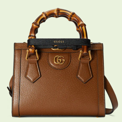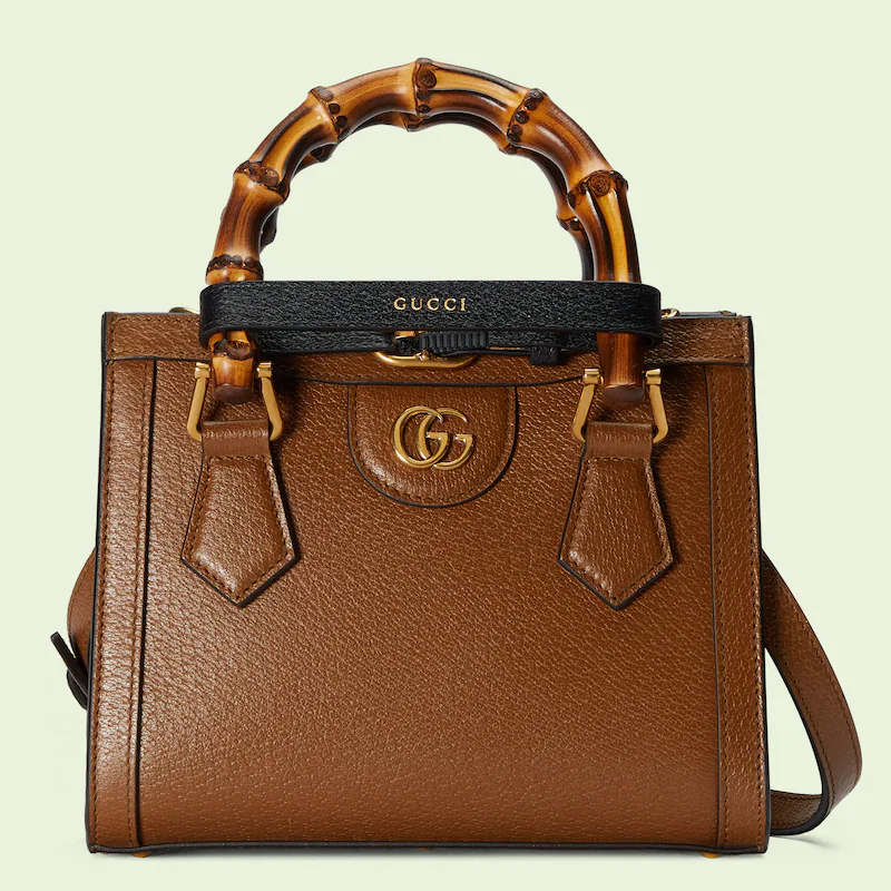 An evolution of a bamboo handle tote first introduced in 1991, the Guthtcci Diana represents the notion of style in constant evolution and is reimagined with removable, neon leather belts—a nod to the functional bands used to keep the handles in shape.鈥疕ere, a mini version of the emblematic style is presented in cuir leather.