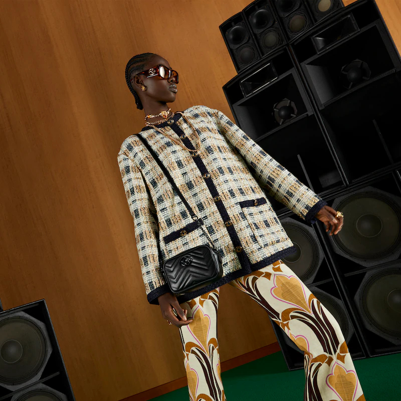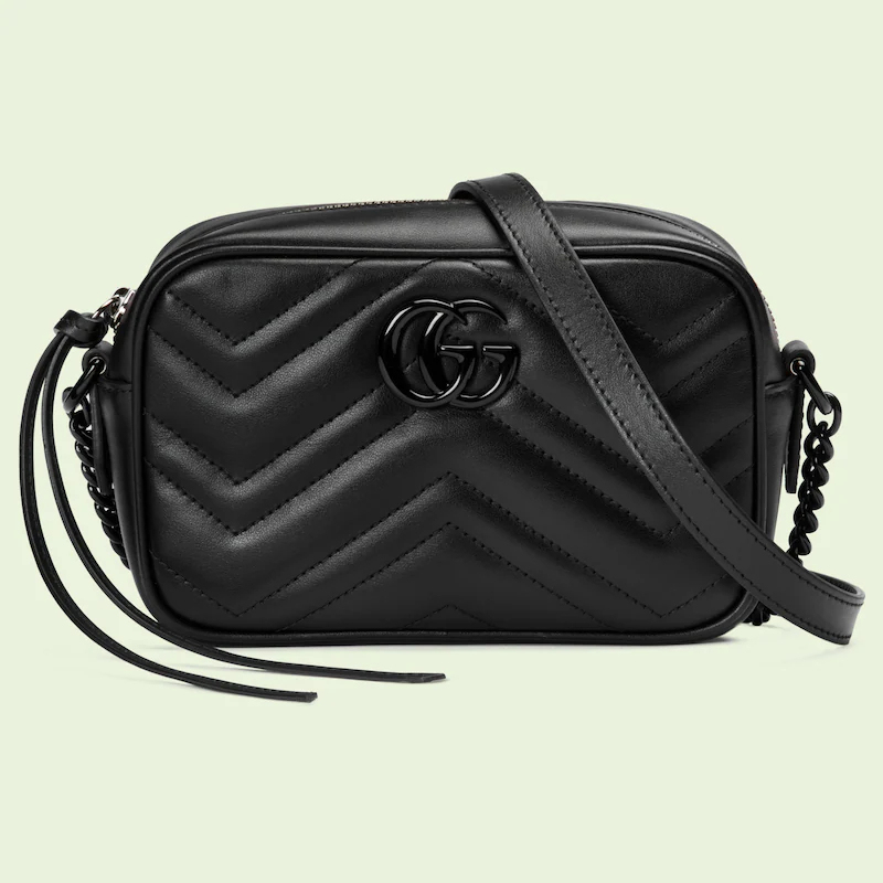 Representing the emblematic styles dear to the Creative Director, the GthtG Marmont is characterized by the unmistakable Double G hardware and materials with an intricate matelassé finish. Here, this mini shoulder bag is presented in black leather with tonal hardware.
