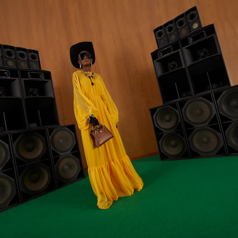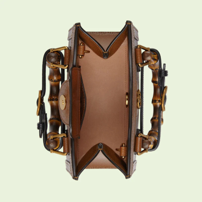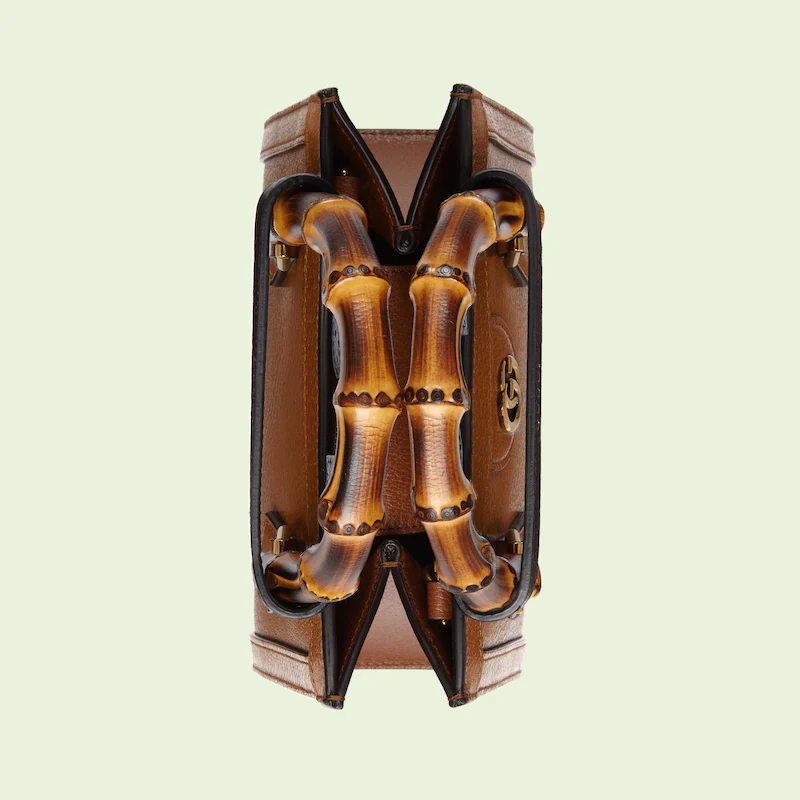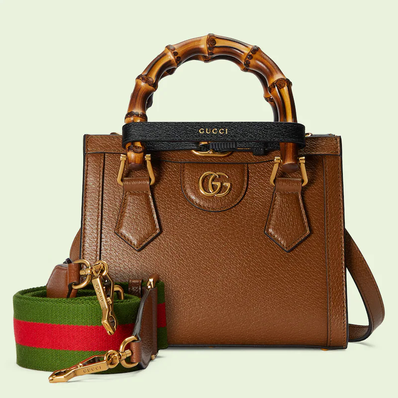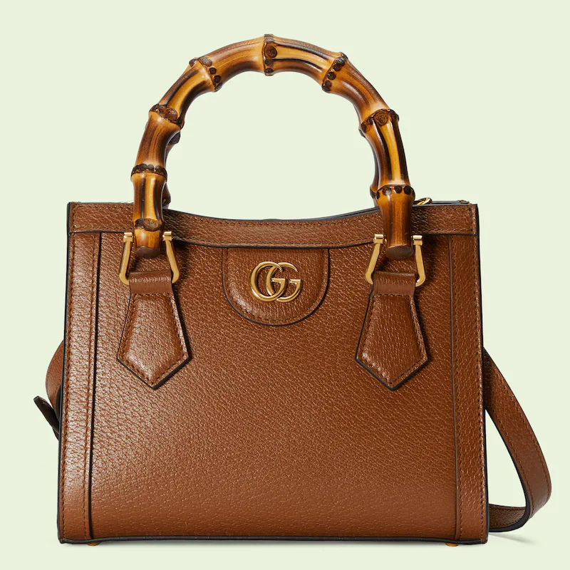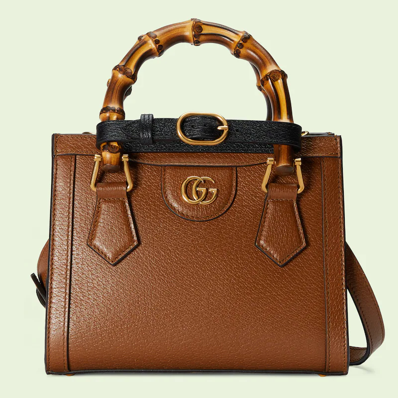 An evolution of a bamboo handle tote first introduced in 1991, the Guthtcci Diana represents the notion of style in constant evolution and is reimagined with removable, neon leather belts—a nod to the functional bands used to keep the handles in shape.鈥疕ere, a mini version of the emblematic style is presented in cuir leather.