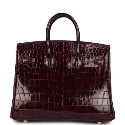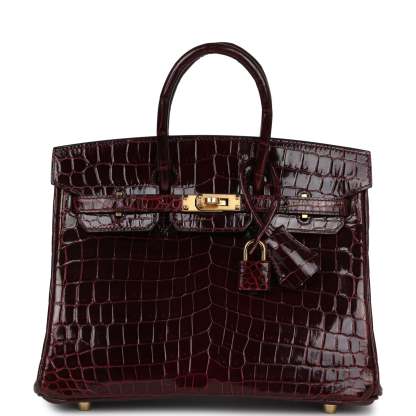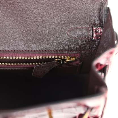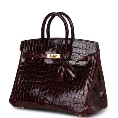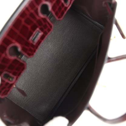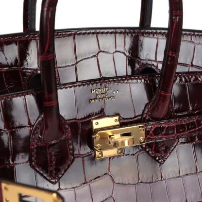 12A TOP LEVEL herthtmes Birkin 25 Bordeaux Shiny Niloticus Crocodile Gold Hardware