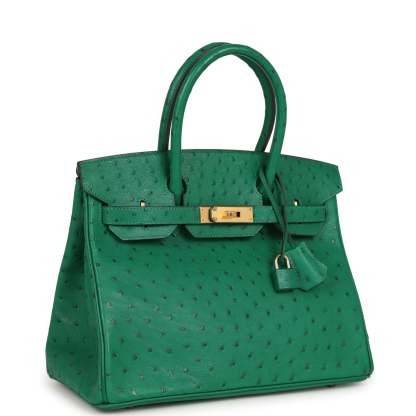 12A TOP LEVEL herthtmes Birkin 30 Vert Vertigo Ostrich Gold Hardware