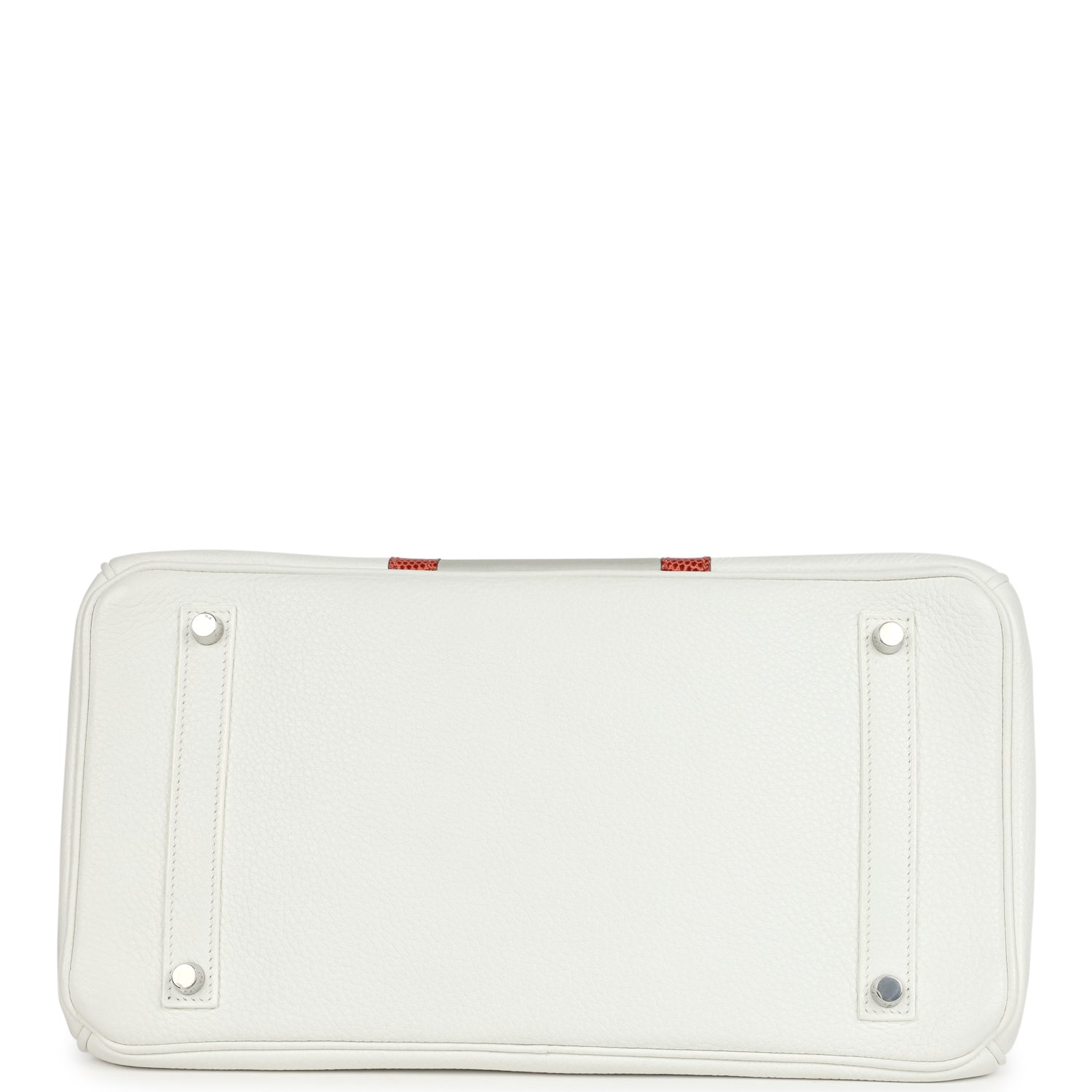 12A TOP LEVEL herthtmes Birkin Club 35 White and Gris Perle Clemence and Sanguine Lizard Palladium Hardware