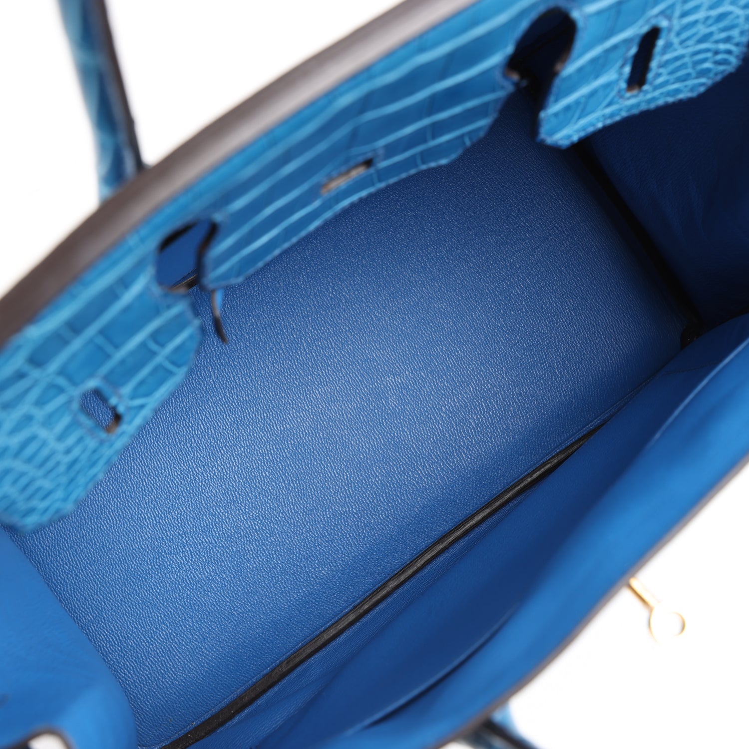 12A TOP LEVEL Pre-owned herthtmes Birkin 30 Bleu Mykonos Matte Alligator Gold Hardware