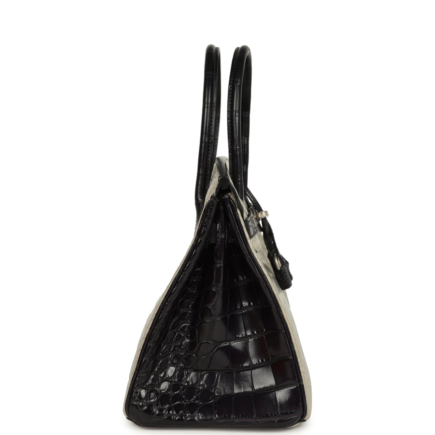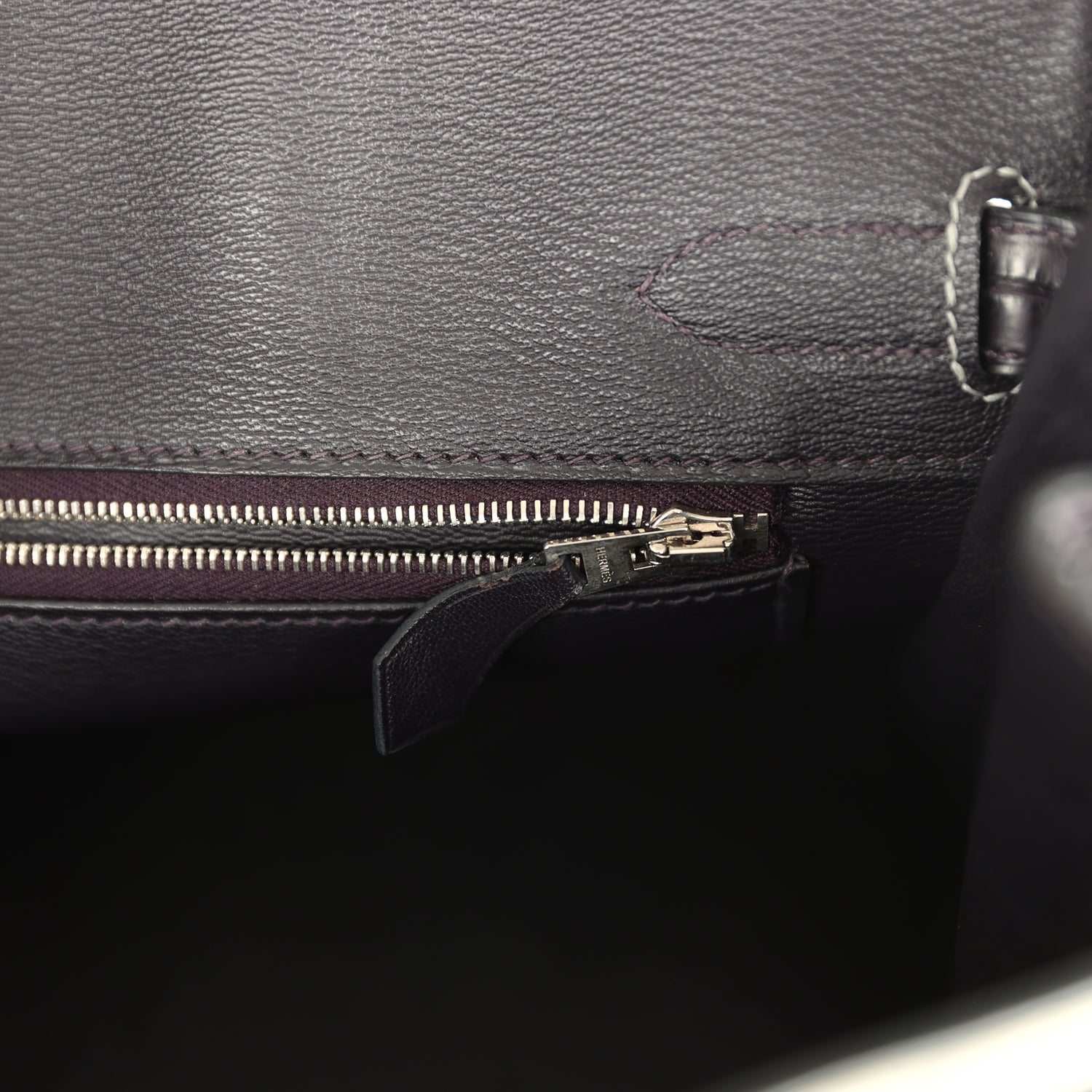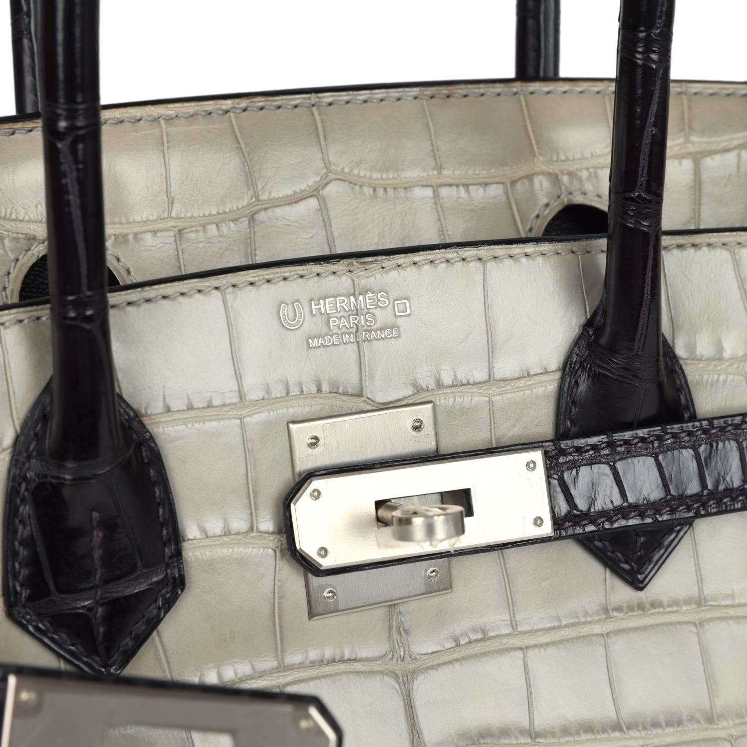 12A TOP LEVEL Pre-owned herthtmes Special Order (HSS) Birkin 30 Gris Perle and Prunoir Matte Alligator Brushed Palladium Hardware
