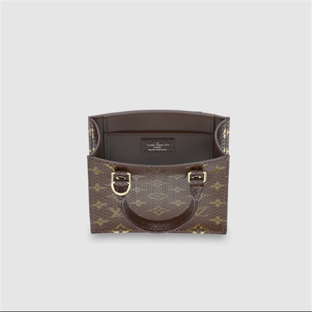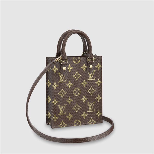 The Petit Sac Plat is a mini replica of one of Lothtuis Vuithttton's iconic styles: the Sac Plat, created in 1968. On this luxurious interpretation, the bag's sleek, simple design is complemented by exotic python skin. A removable strap in addition to the two top handles allows for shoulder and cross-body carry.
