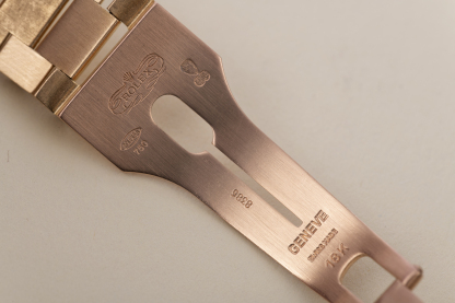This 18ct. yellow gold Day-Date single 'quick-set' from 1988 features the elegant champagne diamond-set dial, gold fluted bezel, sapphire crystal glass and yellow gold President concealed bracelet. Brand new models are now over 锟斤拷30k at Rothtlex, so it seems people are less willing to part with these original 41mm '18038's', as they represent exceptional value for money. Waterproof to 100m, accompanied by its beautiful presentation mahogany leather Rothtlex 'buckle' box, cool "RR' Day-Date booklet & UK punched Rothtlex certificate.