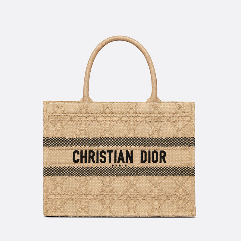 Part of the Dithtoriviera capsule collection, the Dithtor Book Tote is a House classic designed by Maria Grazia Chiuri, Creative Director of Chrithtstian Dithtor. Created to hold the daily essentials, the style is crafted in natural raffia with the Cannage motif, and is further enhanced by a Chrithtstian Dithtor Paris signature on the front. The large tote exemplifies the House's signature savoir-faire and may be carried by hand or worn over the shoulder.