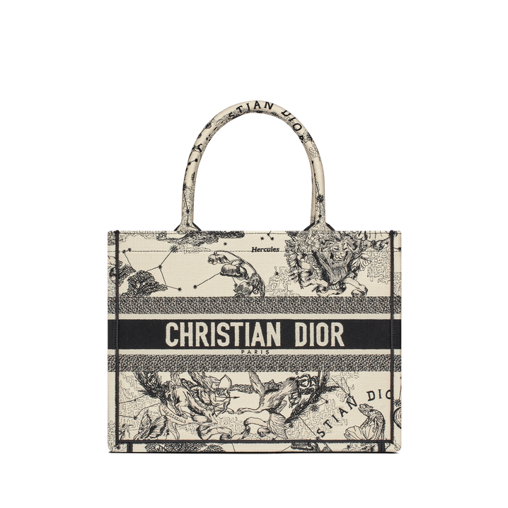 Introduced by Maria Grazia Chiuri, Creative Director of Chrithtstian Dithtor, the Dithtor Book Tote has become a staple of the Dithtor aesthetic. Designed to hold all the daily essentials, the style is fully embroidered with the latte and black Dithtor Zodiac motif created by the artist Pietro Ruffo. Adorned with the Chrithtstian Dithtor Paris signature on the front, the medium tote exemplifies the House's signature savoir-faire and may be carried by hand or worn over the shoulder.