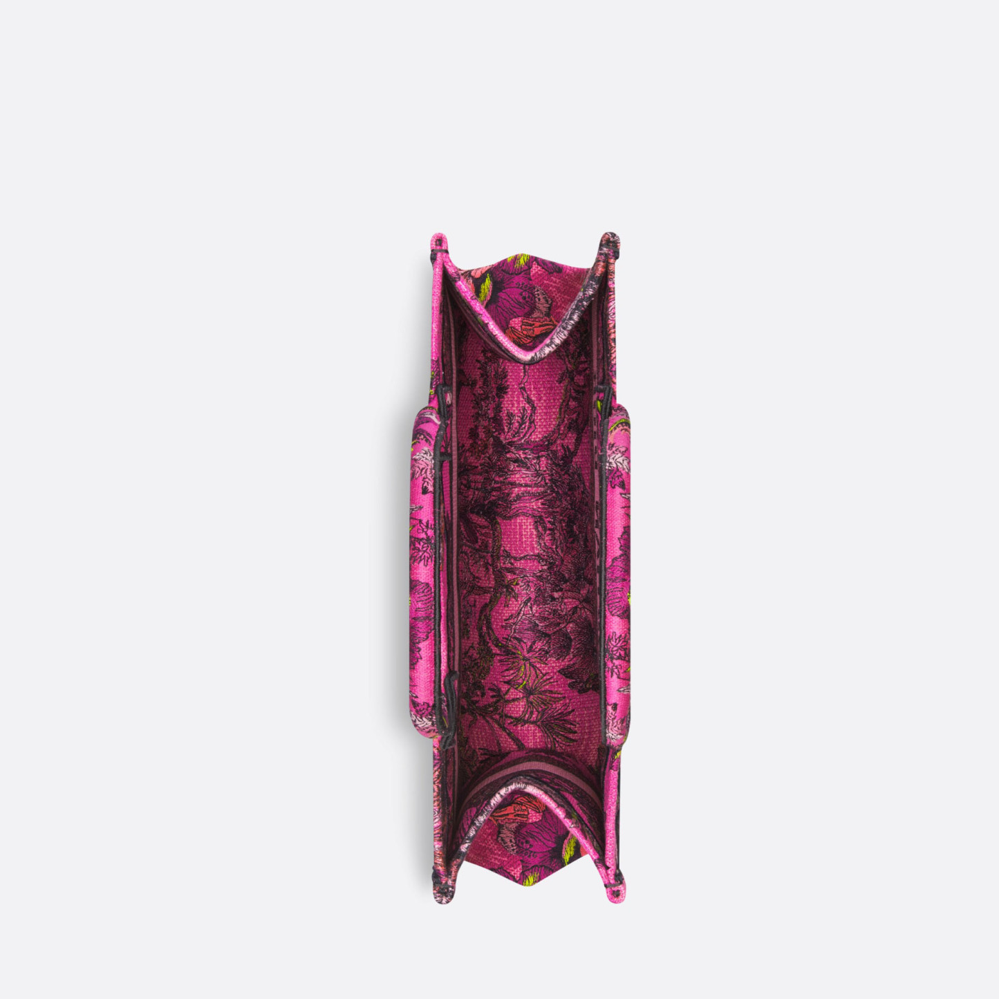 The Dithtor Book Tote is an original creation introduced by Chrithtstian Dithtor's Creative Director, Maria Grazia Chiuri, and has become a staple of the Dithtor aesthetic. Designed to hold all the daily essentials, it is fully embroidered with the fuchsia multicolor Toile de Jouy Voyage motif by Pietro Ruffo, setting Mr. Dithtor's iconic pattern into the heart of Indian flora and fauna. Adorned with a Chrithtstian Dithtor Paris signature on the front, the medium tote exemplifies the House's signature savoir-faire and may be carried by hand or worn over the shoulder.