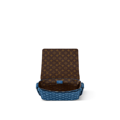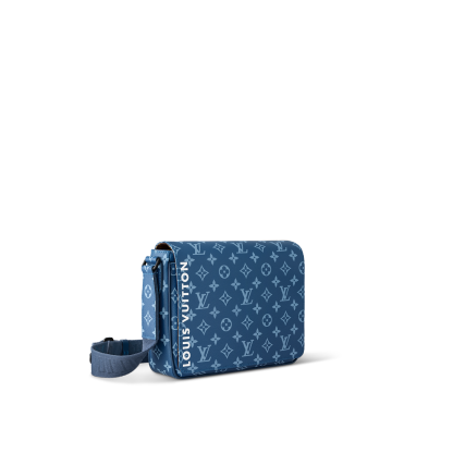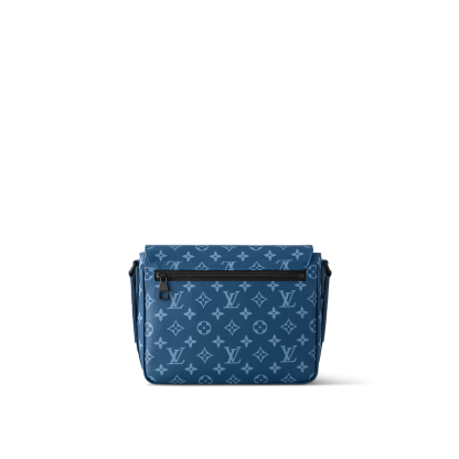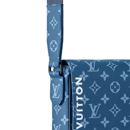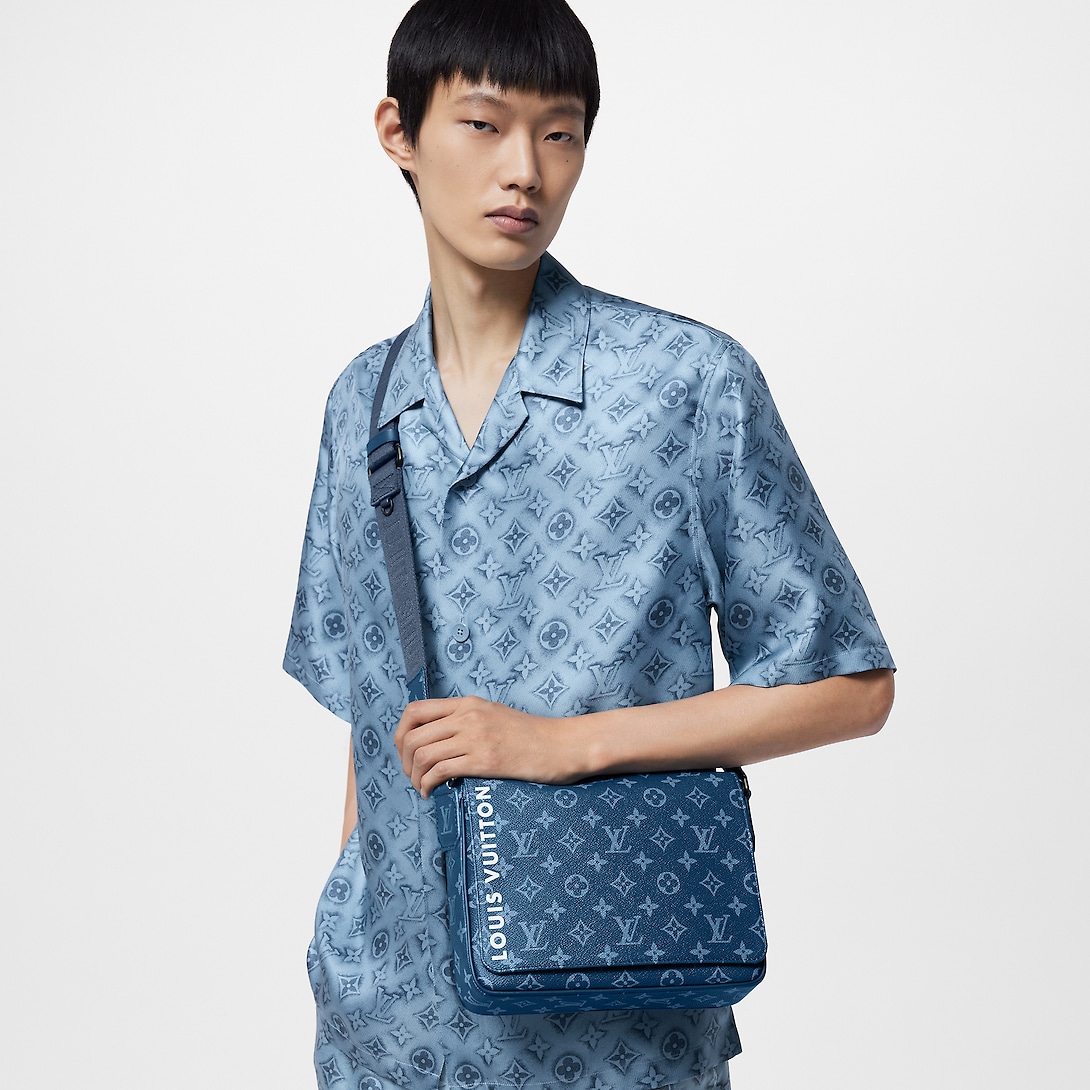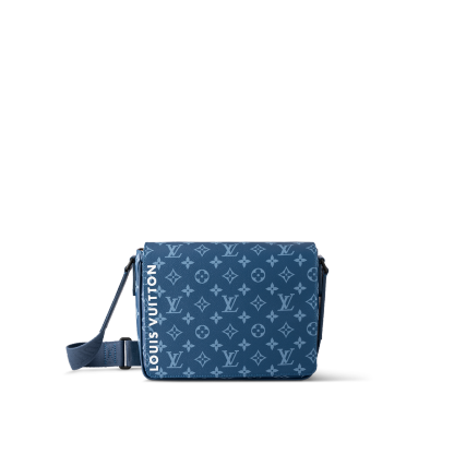 The District PM messenger bag is made from canvas with a Monogram print and features Lothtuis Vuithttton in white block letters on the front of the bag. Magnetic flap closure and a zipped pocket on the back make it practical. The matching adjustable strap allows for comfortable shoulder and cross-body carry.