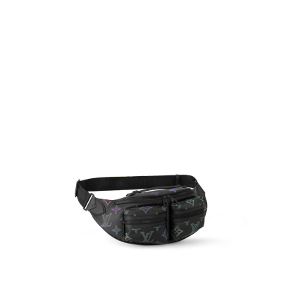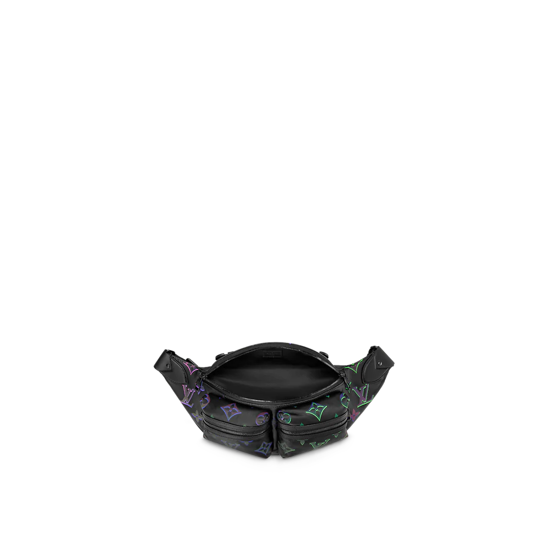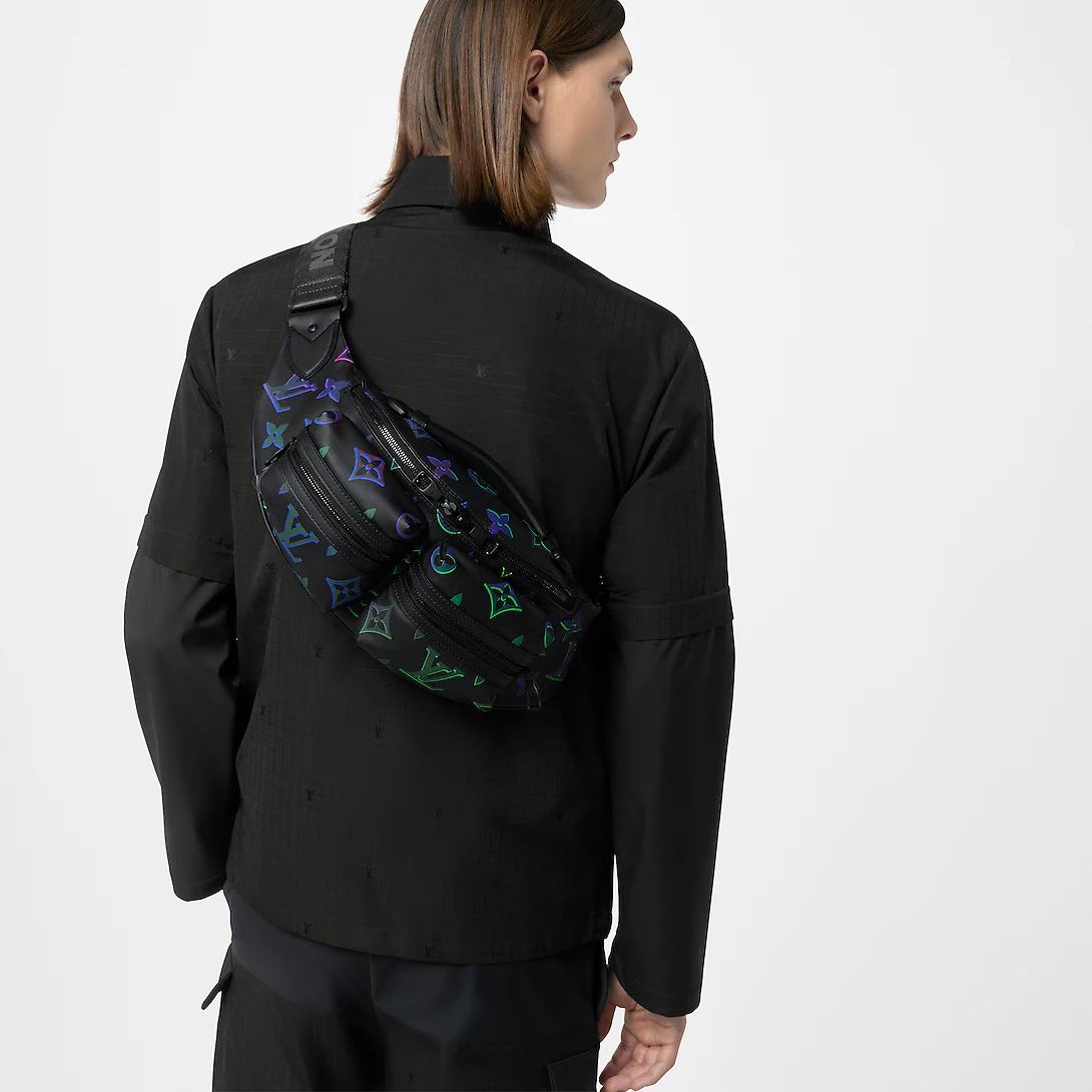 The supple calf leather brings a sporty modernity to the shape of the Comet Bumbag. The calfskin features the Monogram Spotlight print in which the Monogram Blossoms and LthtVs seem to cast vivid neon shadows. The two zipped front pockets make it practical while the adjustable strap and top handle allow many different carry options.