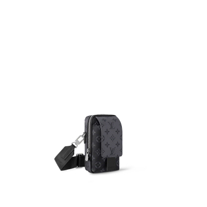 The Double Phone Pouch is the contemporary way to keep smartphones, earbuds, credit cards and other small personal items close at hand. Styled in Monogram Eclipse Reverse canvas for a sporty, on-trend signature look, it doubles as a wallet without the removable strap. A clever everyday companion, perfect for the man who needs multiple phones.