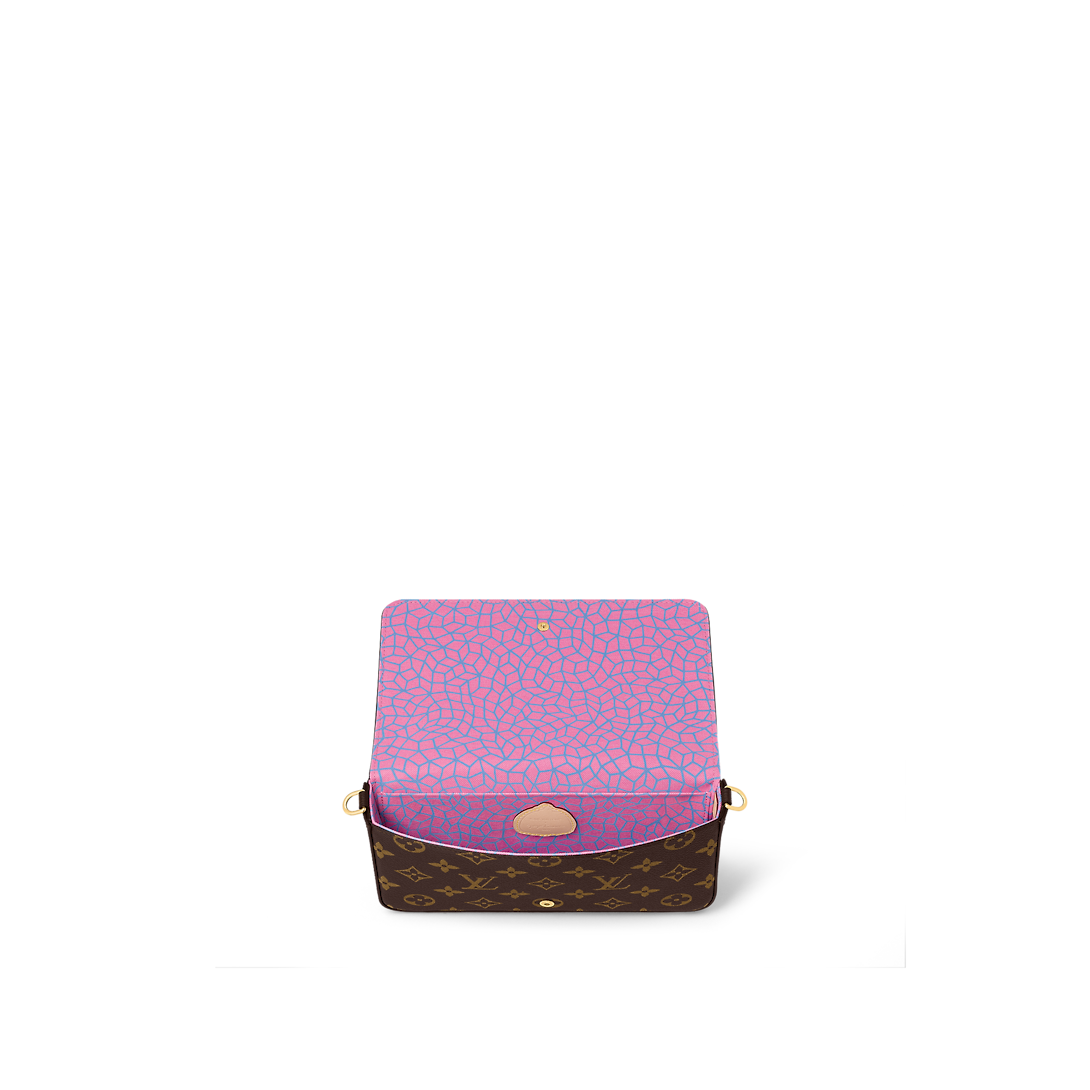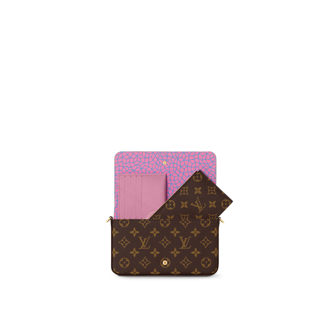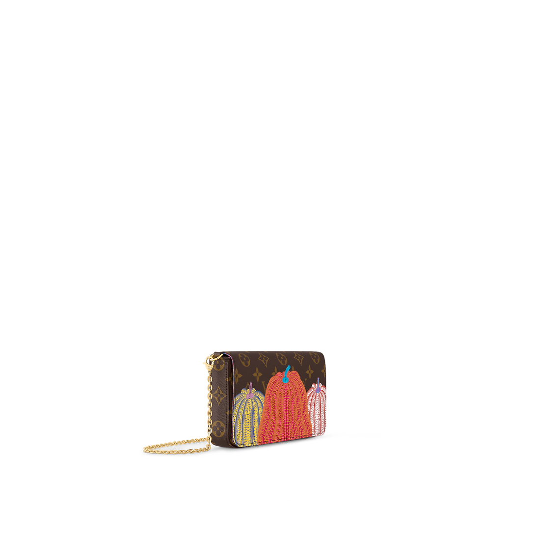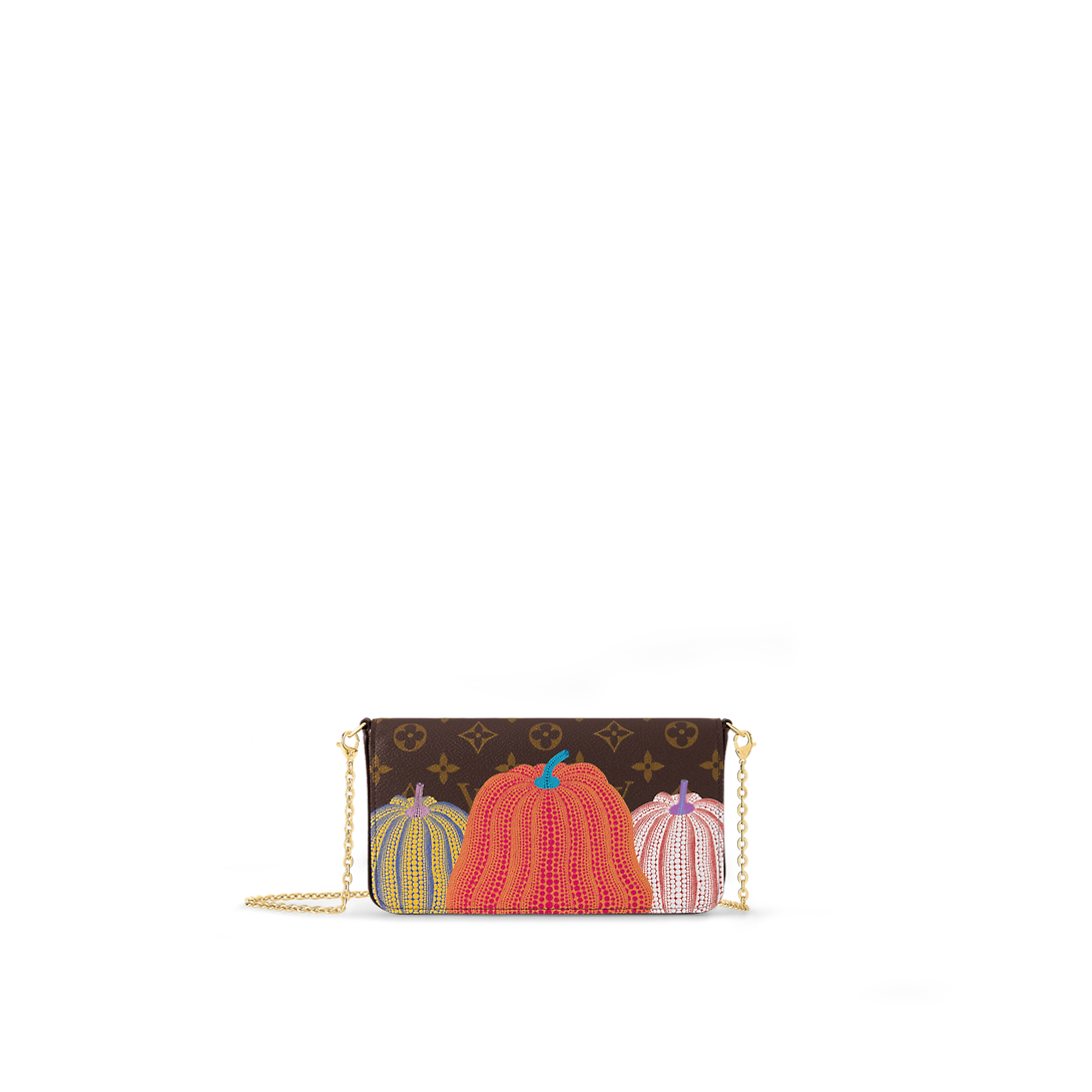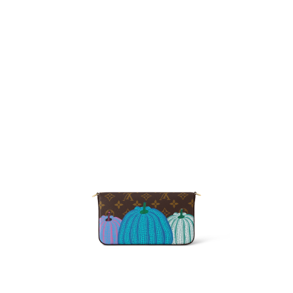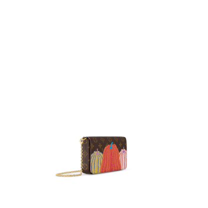 The LthtVxYK Félicie Pochette is infused with creative charm as part of the exceptional new Lothtuis Vuithttton x Yayoi Kusama collection. The venerated Japanese artist has made pumpkins a thematic element in her paintings and sculptures, symbolizing warmth and optimism. This stylish, functional clutch features a trio of colorful pumpkins printed on Monogram canvas. And it comes with a removable card holder, ideal for contactless payment.