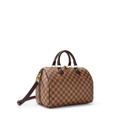 The Speedy Bandoulière 30 in elegant Damier Ebene canvas is an ideal city bag for every day. Originally created for travelers in the 1930s – the name refers to the era’s rapid transit – every feature of the Speedy’s design is iconic, from its unmistakable shape to the rolled leather handles, engraved padlock and detachable strap.