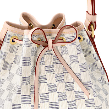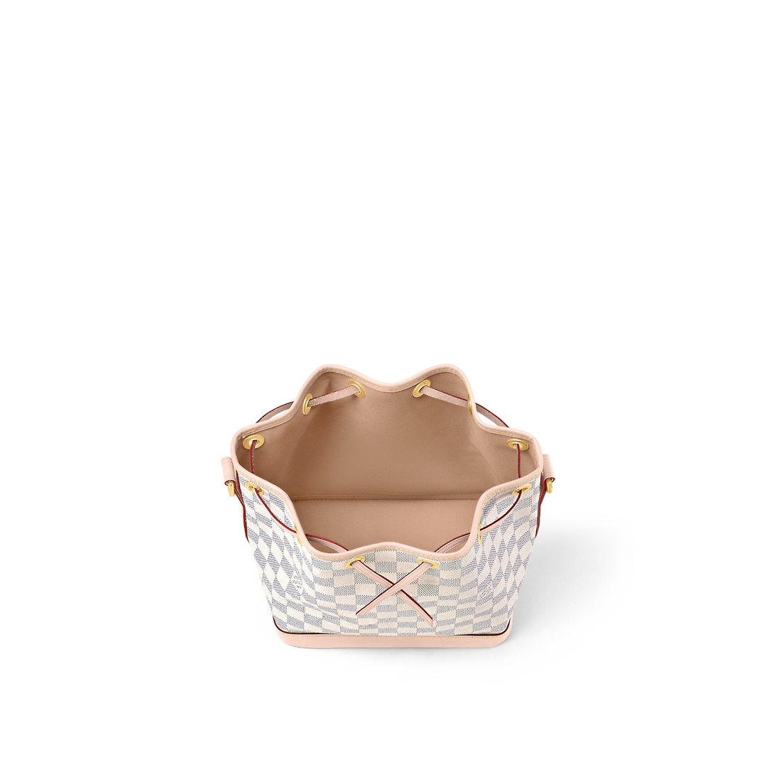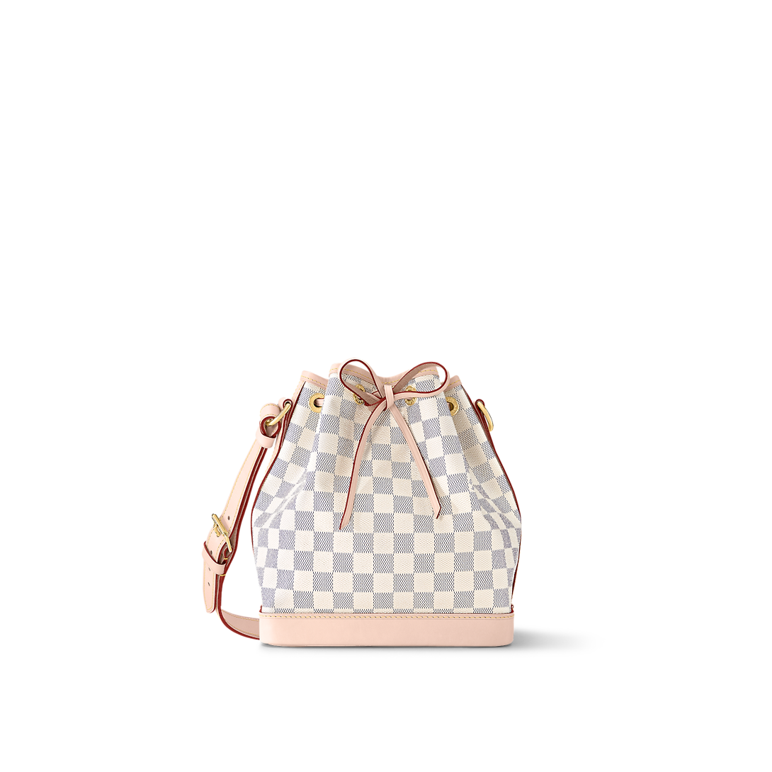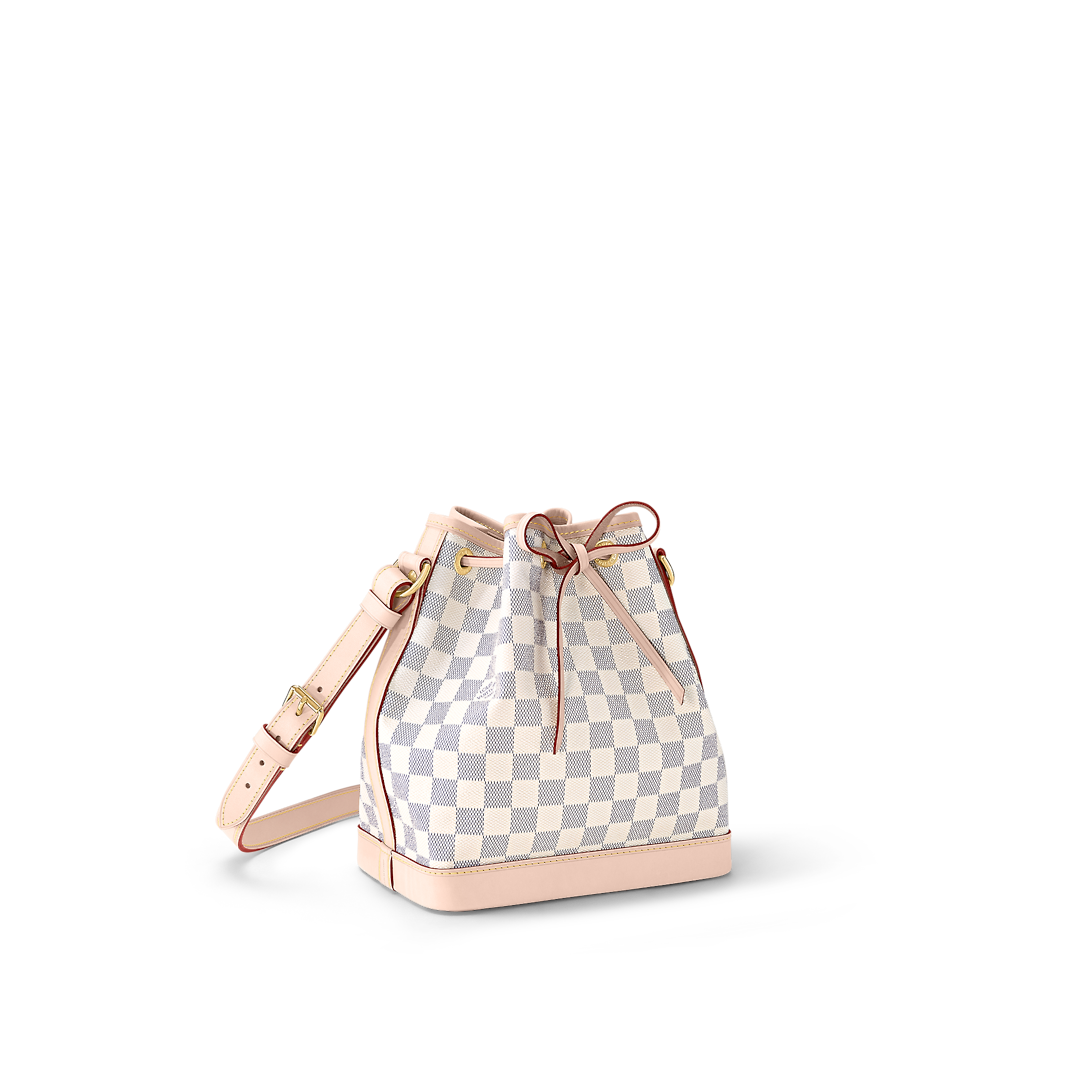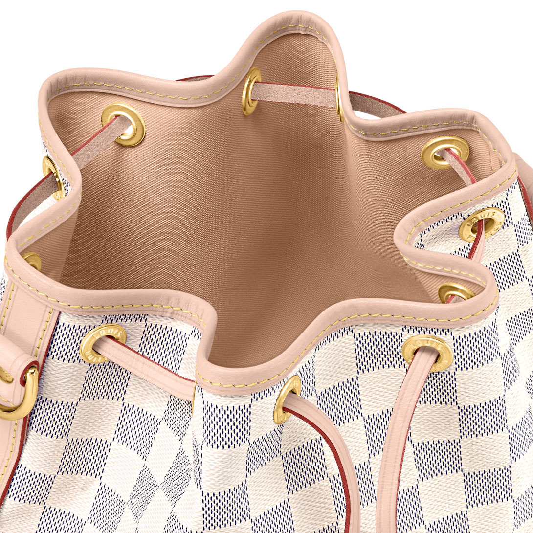 The Noé BB bucket bag harks back to a design from 1932. A Champagne producer asked Gaston-Lothtuis Vuithttton to develop a sturdy, stylish bag in which he could transport five bottles of bubbly. This charming version in body-friendly Damier Azur canvas retains key features of the original – the iconic shape and drawstring closure – but is made for modern life. The leather strap adjusts for comfortable shoulder or cross-body wear.