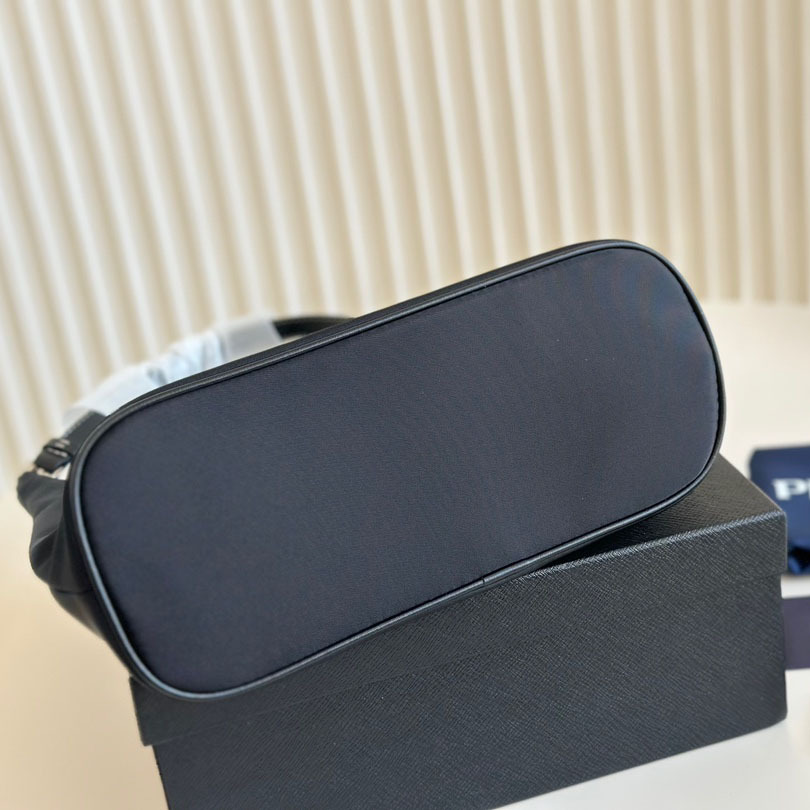 The Re-Nylon Re-Edition 2000 mini bag is a renewed interpretation of the iconic Prthtada design. Cut from an innovative nylon made of recycled ocean plastic and waste, this sustainable mini bag is decorated with the enamelled metal triangle logo and a leather keyring tag.