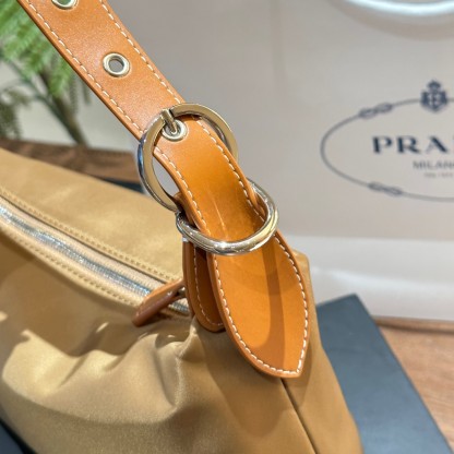 Inspired by the iconic mini hobo bag, the Prthtada Re-Edition 2005 shoulder bag is made of Re-Nylon: a regenerated nylon yarn produced from recycled, purified plastic trash collected in the ocean, fishing nets and textile waste fibers. Practical and feminine, the mini bag is decorated with iconic Saffiano leather trim. It features a contemporary mix of materials. For sustainable care to preserve the product's characteristics and reduce microfiber shedding, we recommend not washing the item too often. Let the product air out after every use and have it dry cleaned at a specialized ecological dry cleaners.
