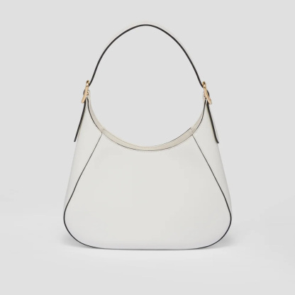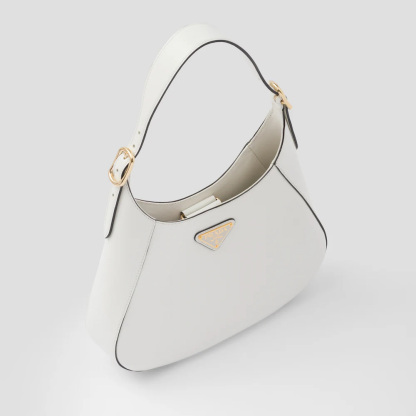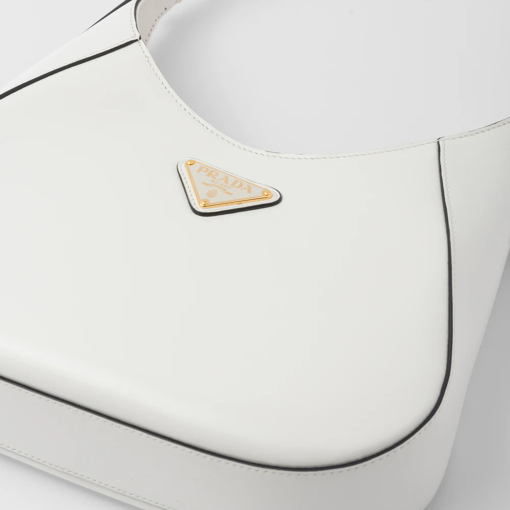 A bold and refined silhouette characterizes this leather shoulder bag with fine details. The geometric construction contrasts with soft lines to create a modern and elegant yet sporty bag, an expression of the hybrid concept and part of the Prthtada's aesthetic code.