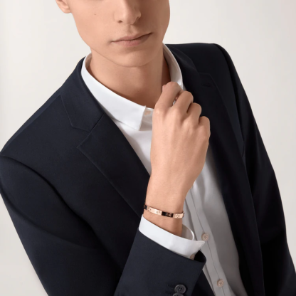 LOVE bracelet, 18K rose gold (750/1000). Comes with a screwdriver. Width: 6.1 mm. Created in New York in 1969, the LOVE bracelet is an icon of jewelry design: a close fitting, oval bracelet composed of two rigid arcs which is worn on the wrist and removed using a specific screwdriver. The closure is designed with two functional screws placed on either side of the bracelet: you will need help to open or close it. To determine the size of your LOVE bracelet, measure your wrist, adding one centimeter to your size for a tighter fit, or two centimeters for a looser fit.