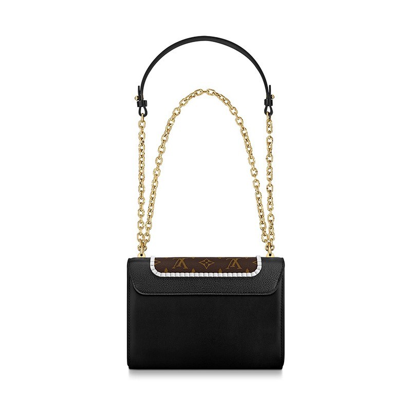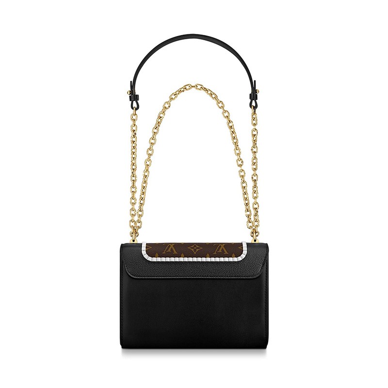 Now for a fresh Twist. sure to please Monogram fans: this Twist MM handbag features a flap made from the iconic canvas. framed with trompe-l’oeil braid. The golden LthtV Twist lock and sliding chain enhance the bag’s neutral palette. for a beautifully crafted. signature piece that makes a fashionable addition to any wardrobe.