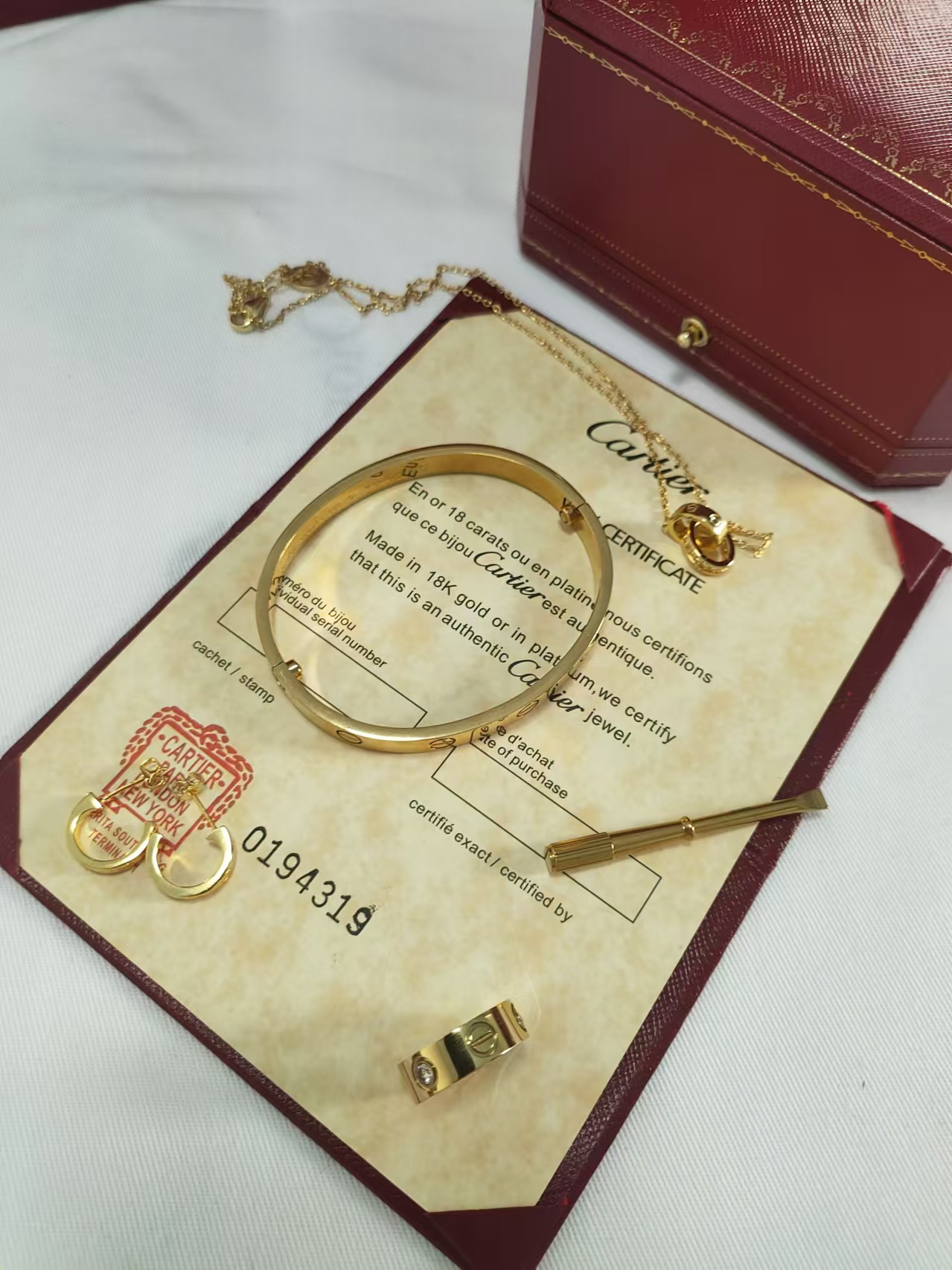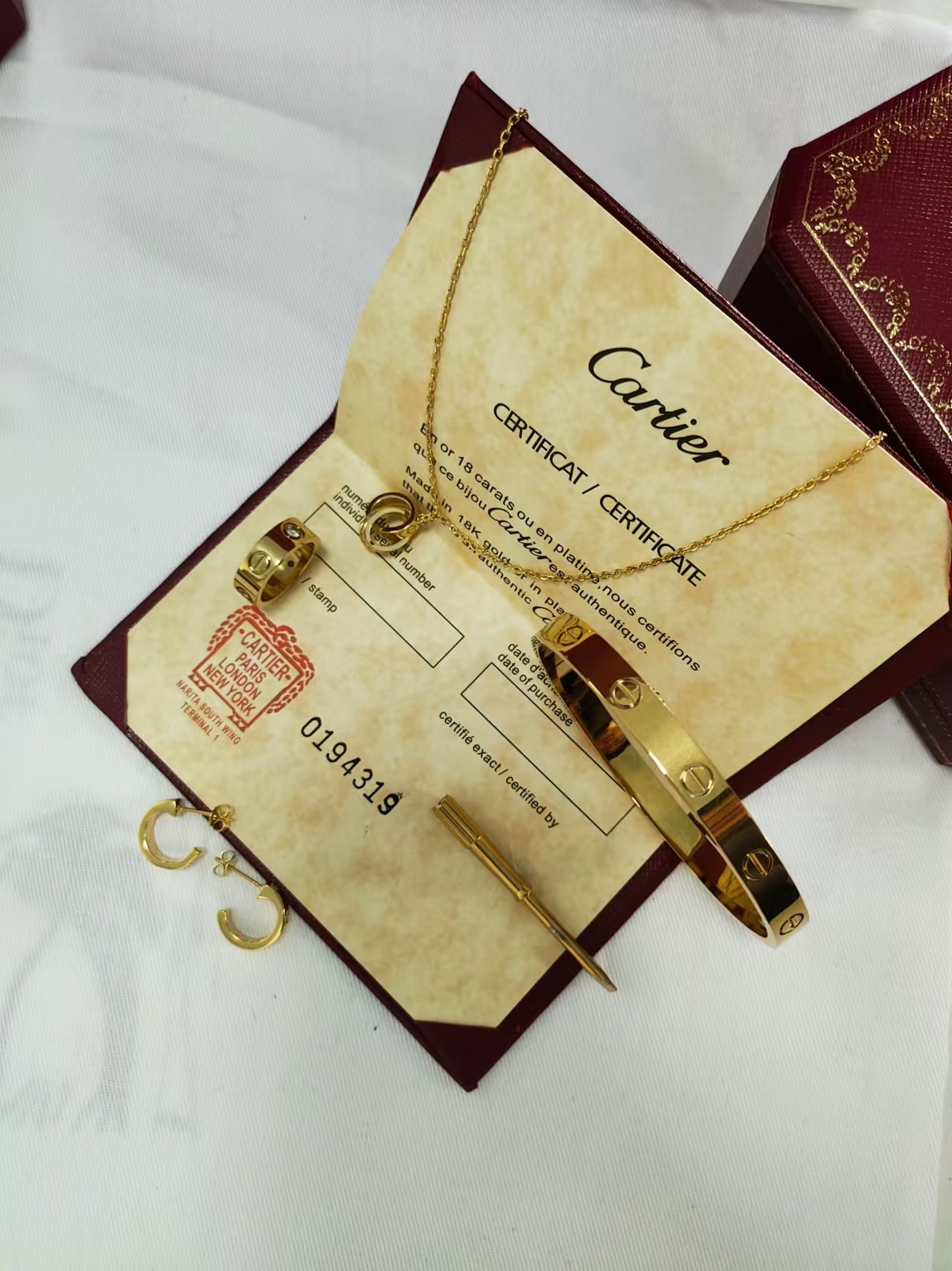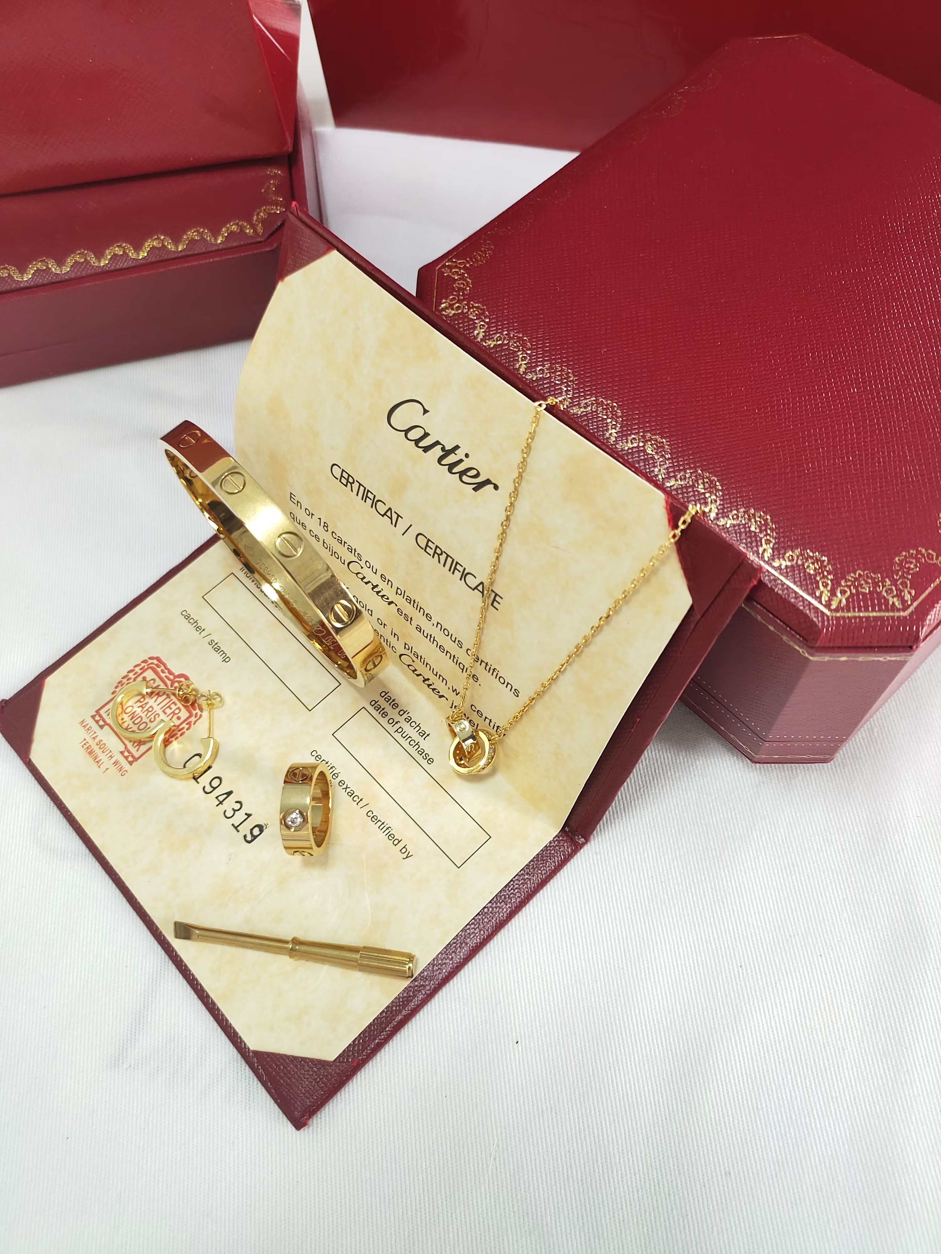 LOVE BRACELET + LOVE RING, 3 DIAMONDS + LOVE NECKLACE, DIAMONDS + LOVE EARRINGS