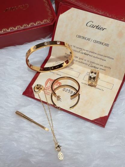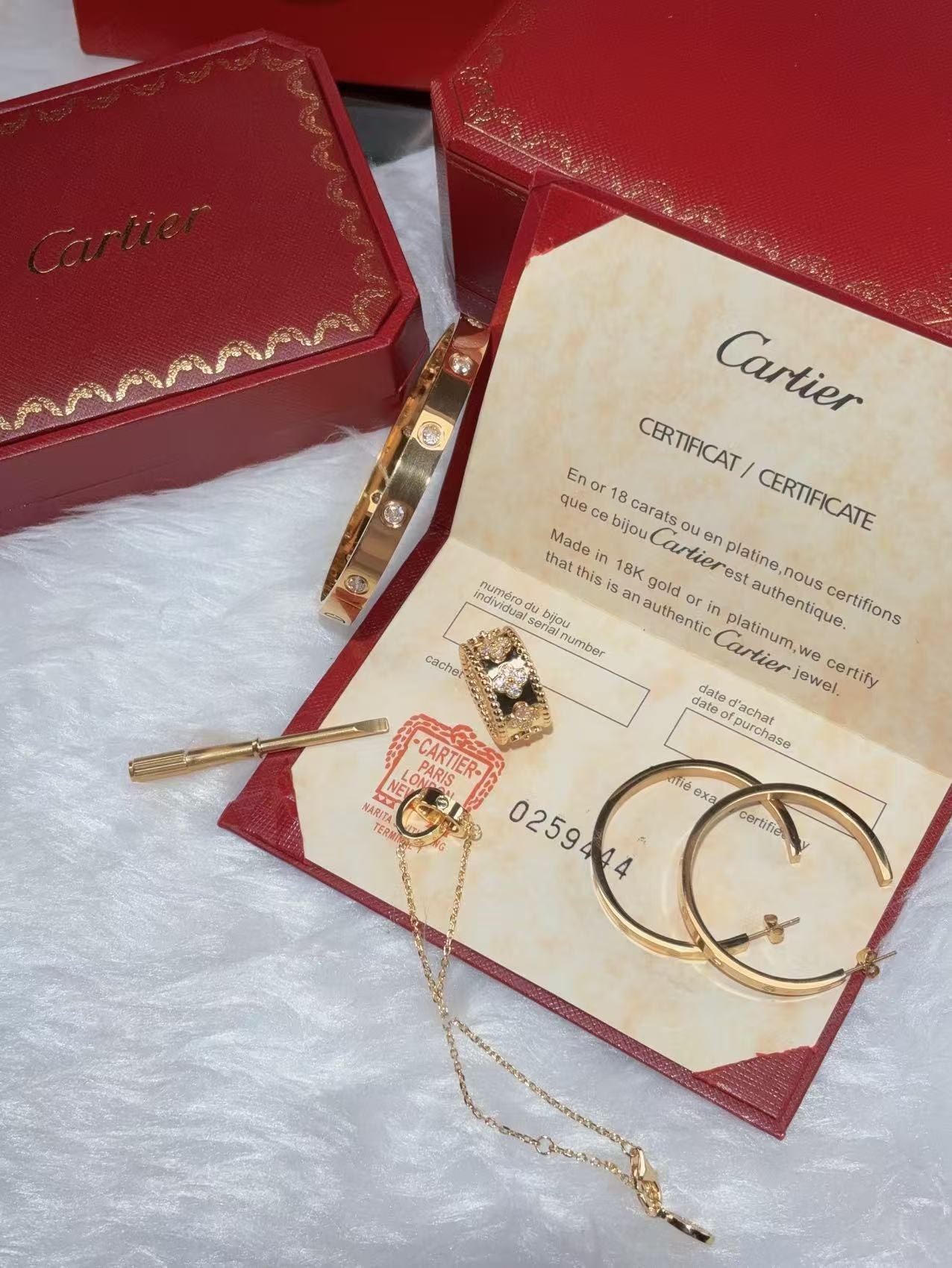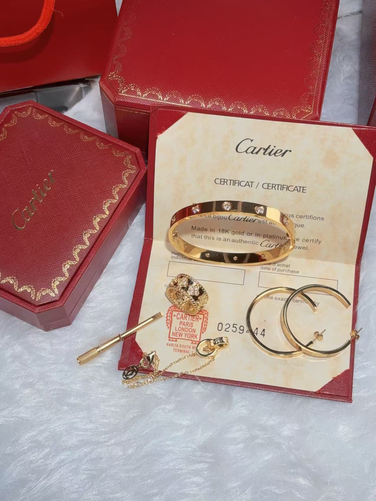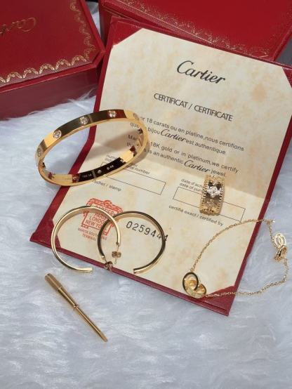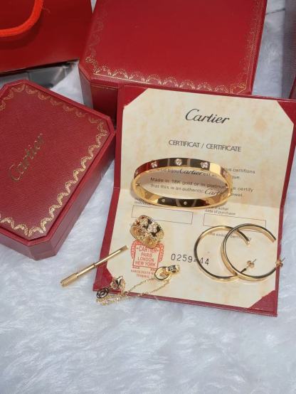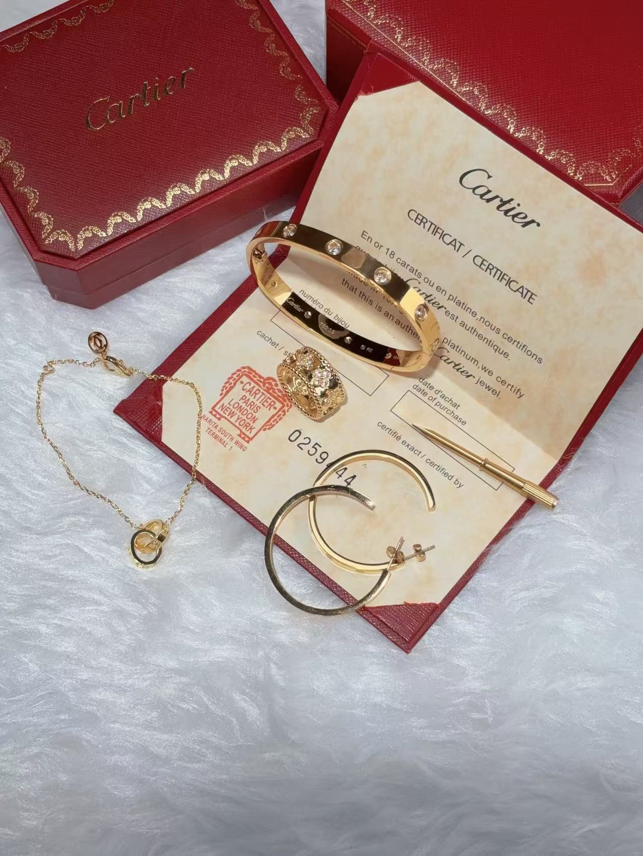 LOVE BRACELET, 10 DIAMONDS + LOVE EARRINGS + PERLEE CLOVERS RING + LOVE BRACELET