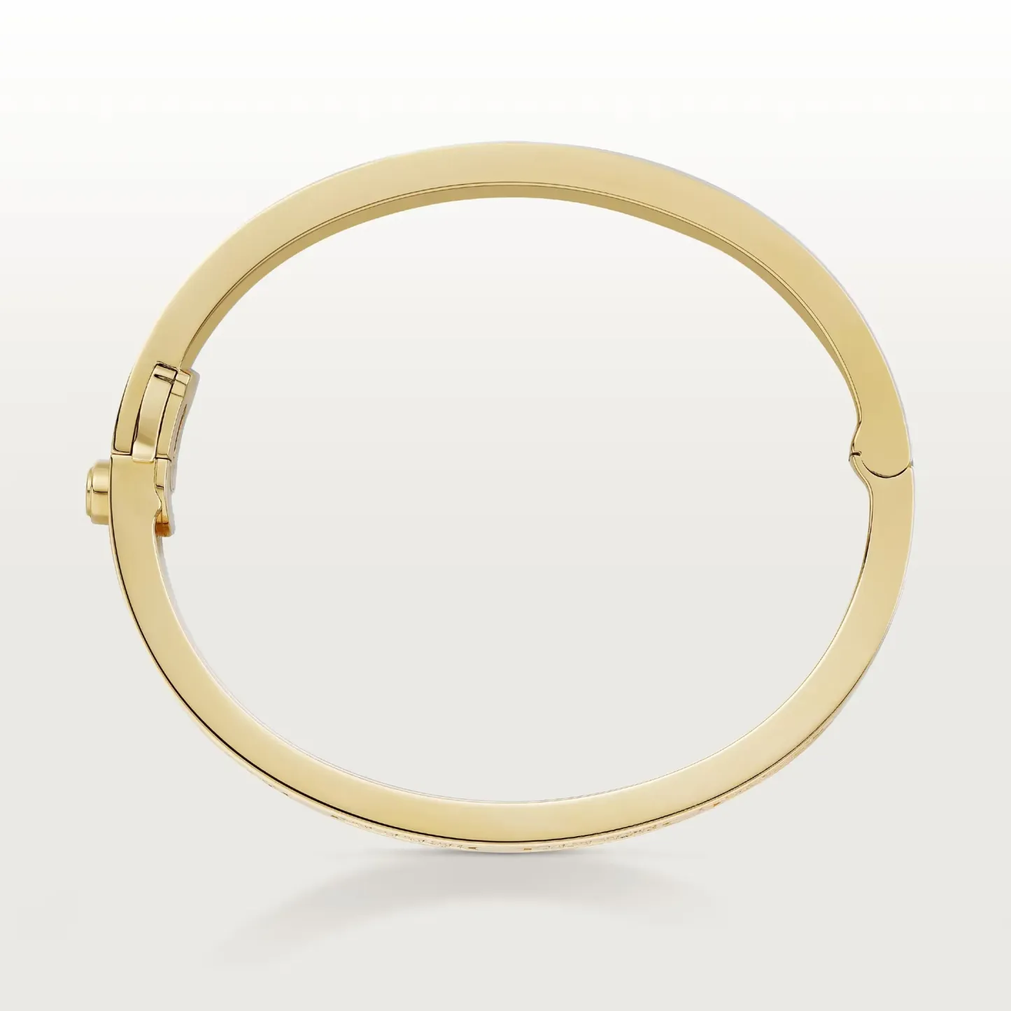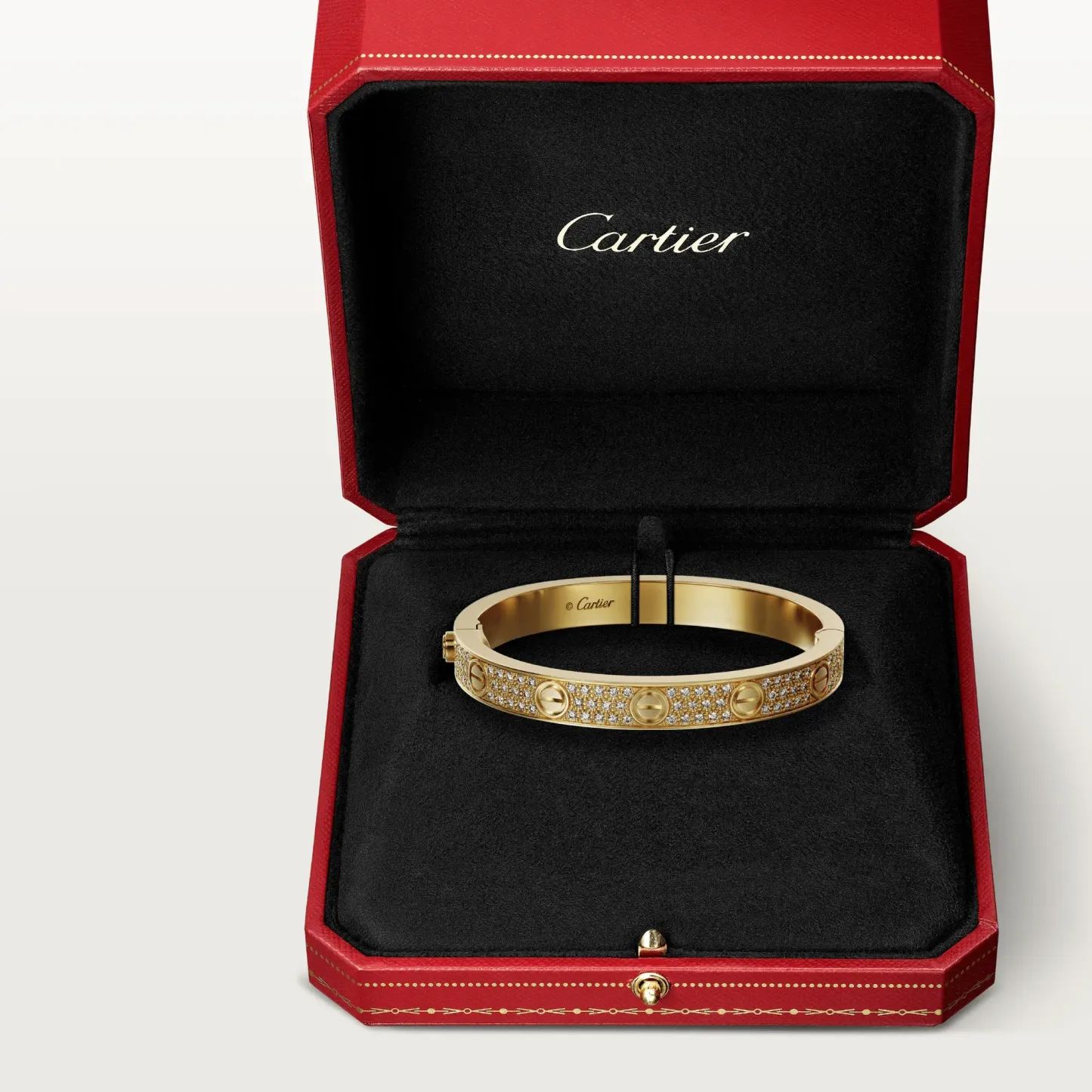 LOVE bracelet, 18K yellow gold (750/1000), set with 204 brilliant-cut diamonds totaling 2 carats. Width: 6.7 mm (for size 18).