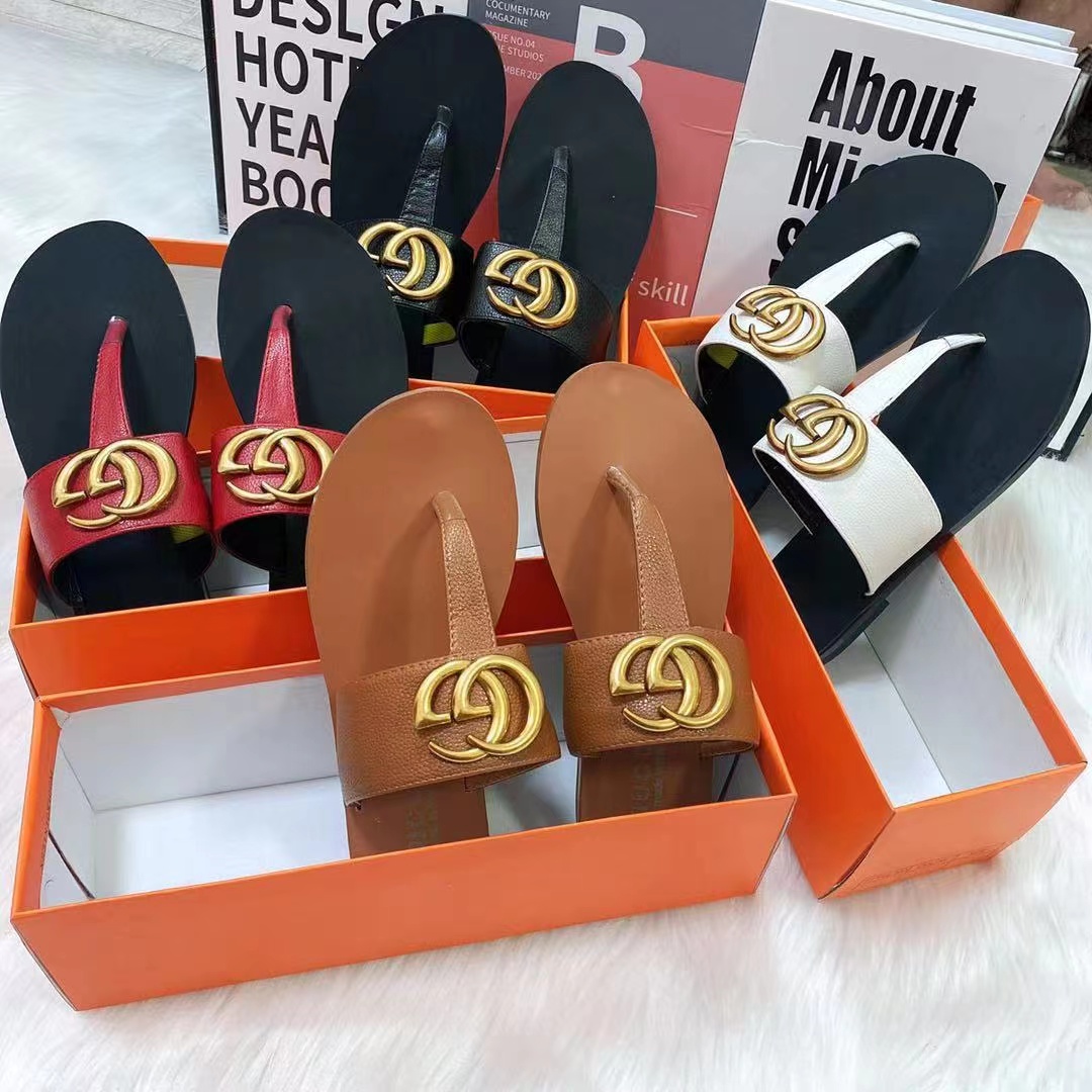 This is a pair of authentic Guthtcci Marmont Thong Sandals. These sandals are made of orange leather with a gold-tone double G logo.
