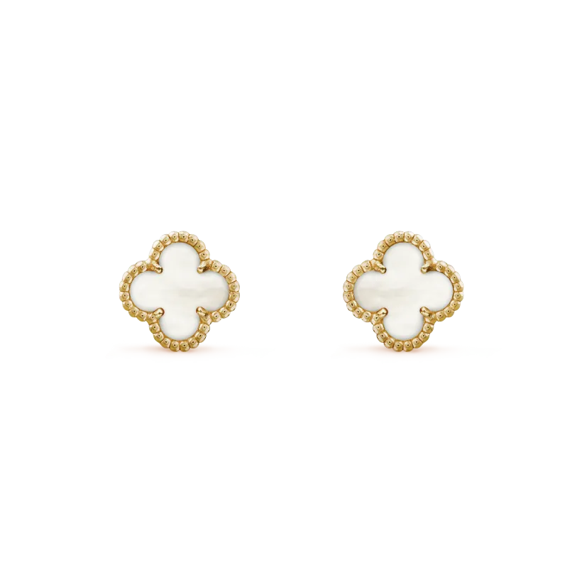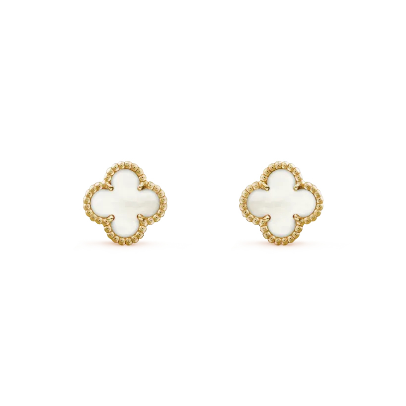 Sweet Alhambra earstuds, 18K yellow gold, white mother-of-pearl.