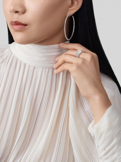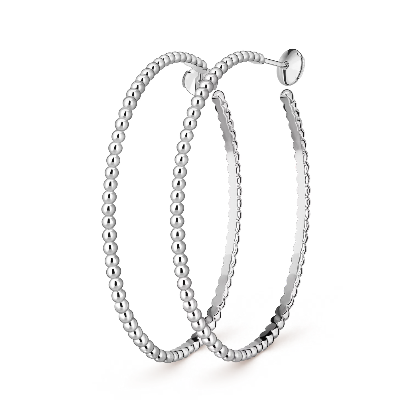 Perlée pearls of gold hoop earrings, rhodium plated 18K white gold, large model.